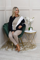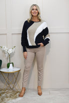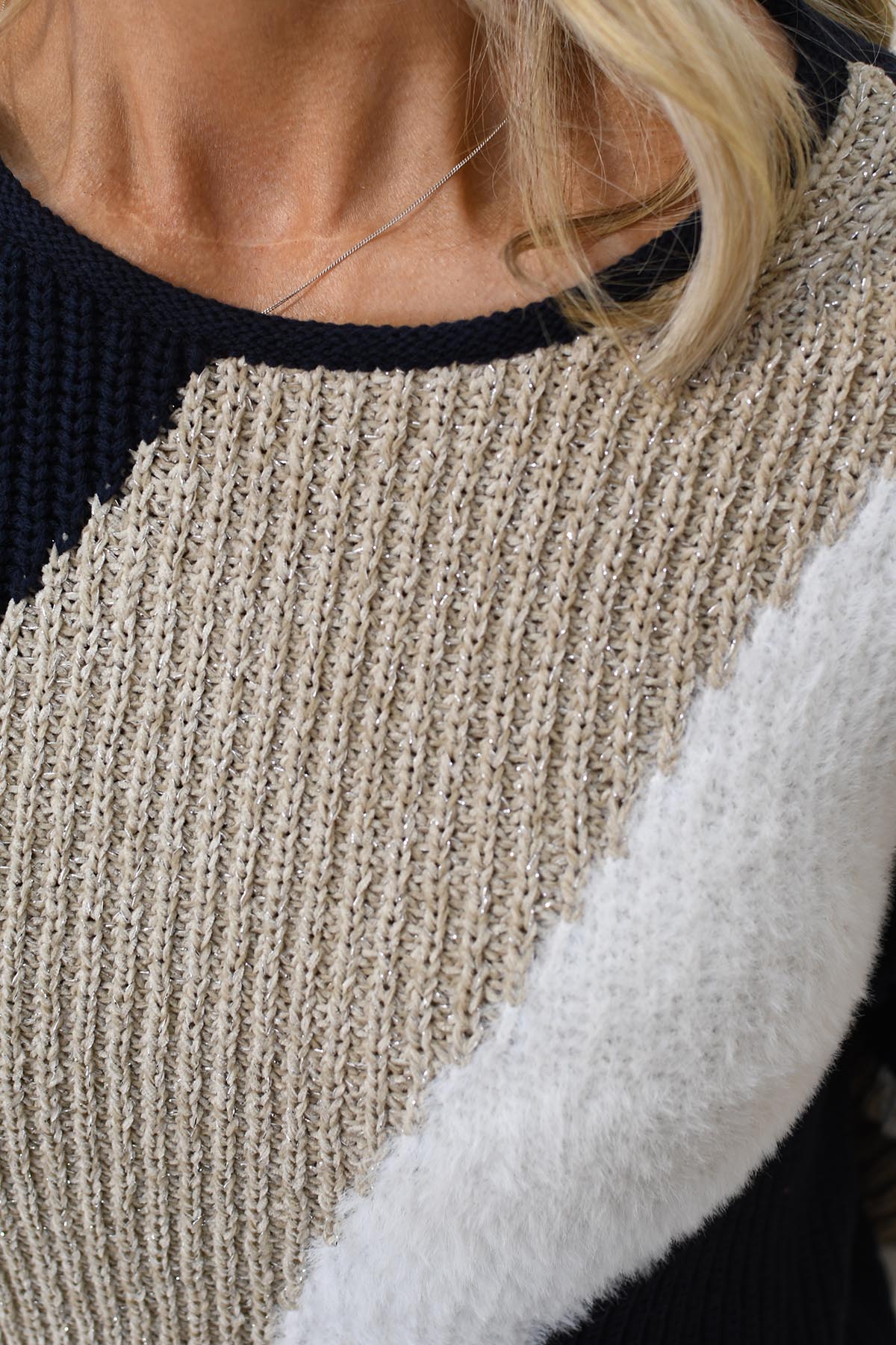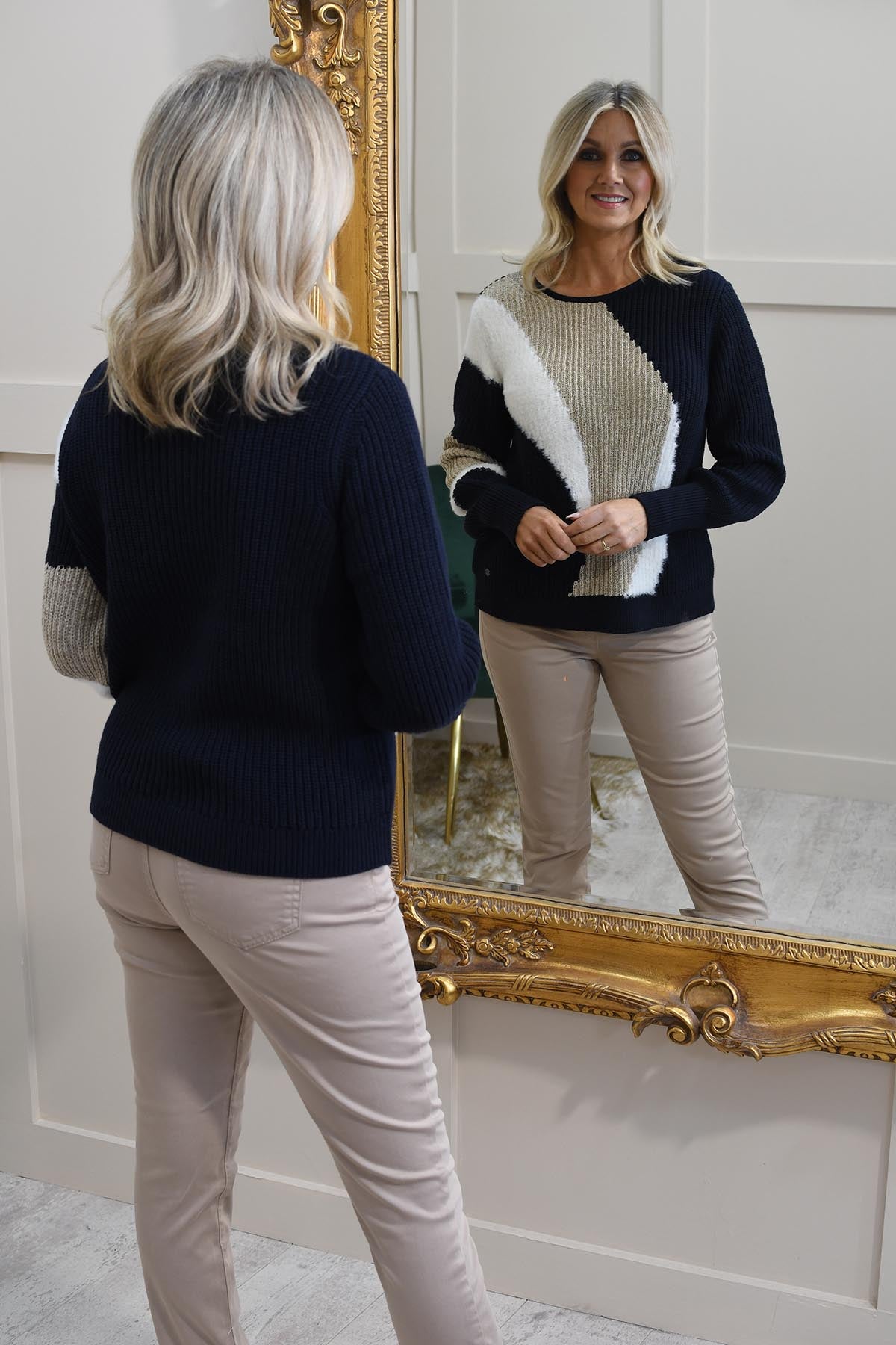 Monari Knitted Jumper With Shimmer Detail – Navy, Sand & White 808973
