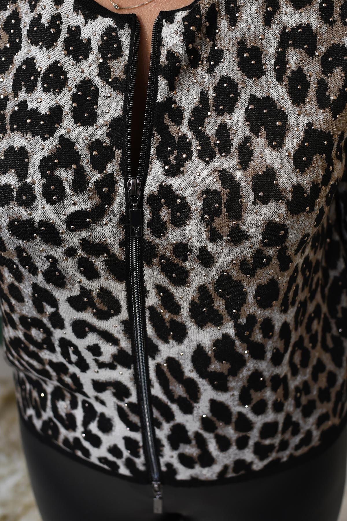 Monari Leopard Print Zip-Up Jacket With Stud Detail- 808928