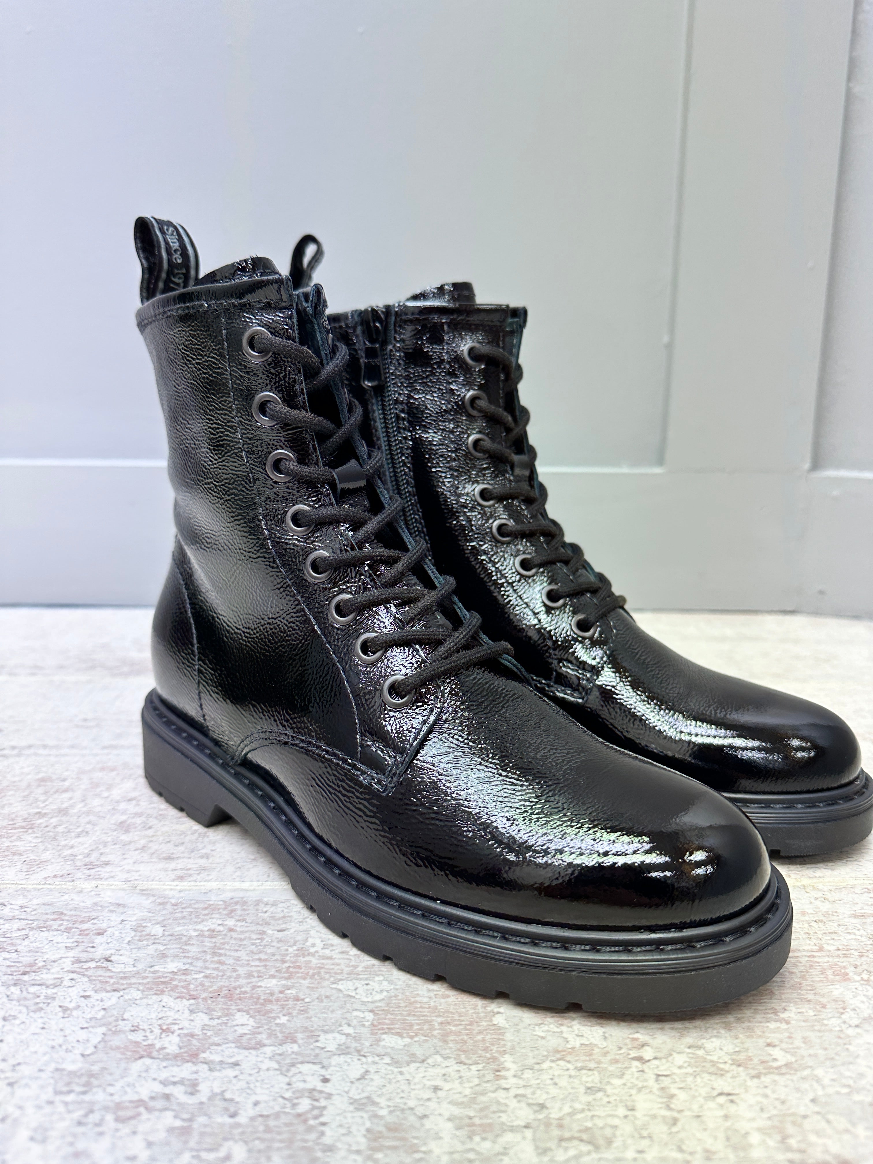 The Boots are a stylish and timeless footwear option that showcases the beauty of black patent leather and the convenience of a side zip closure. Its classic design, side zip feature, and versatility make it a go-to choice for adding a touch of elegance and refinement to your wardrobe.