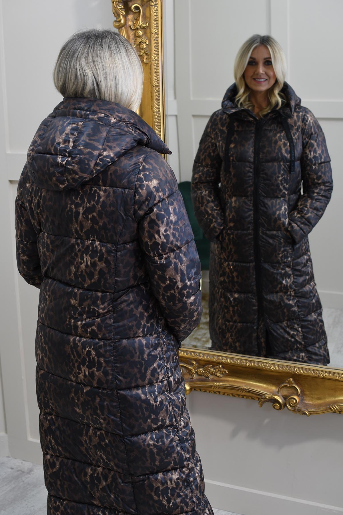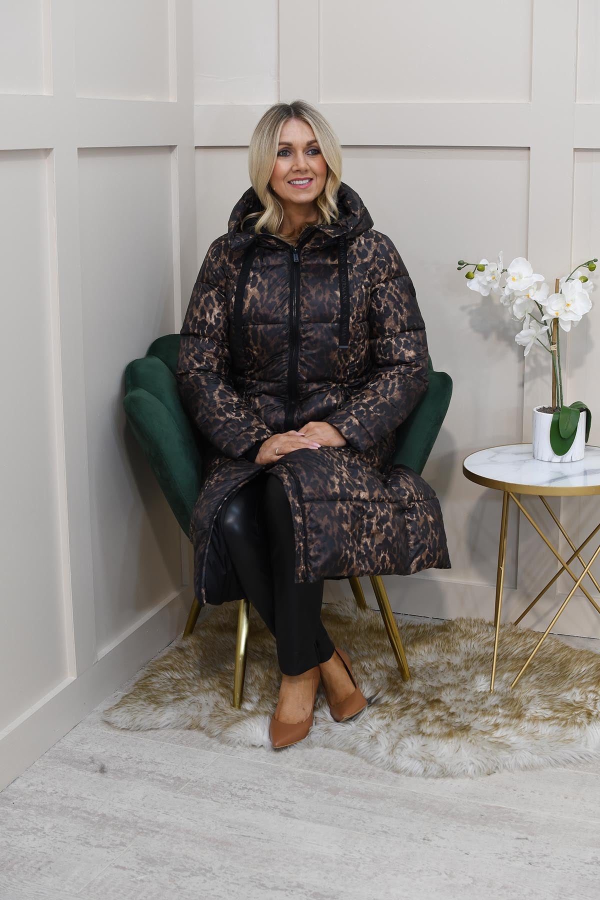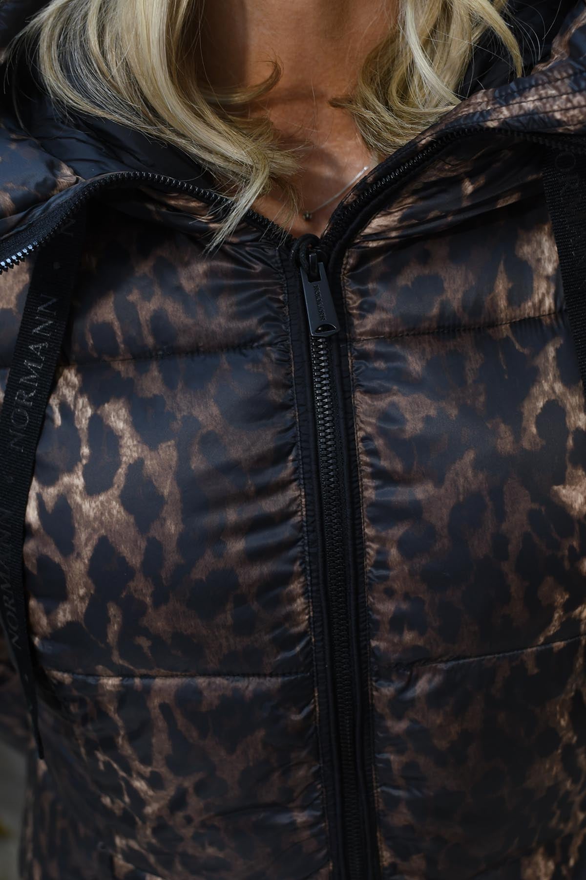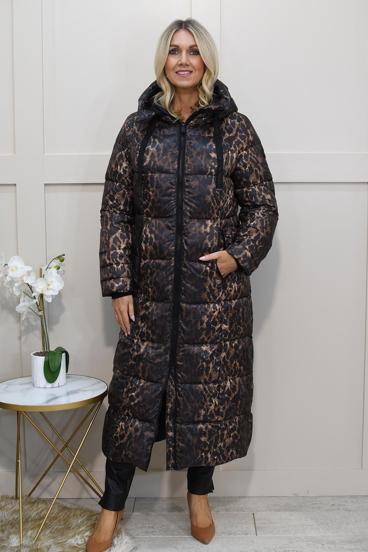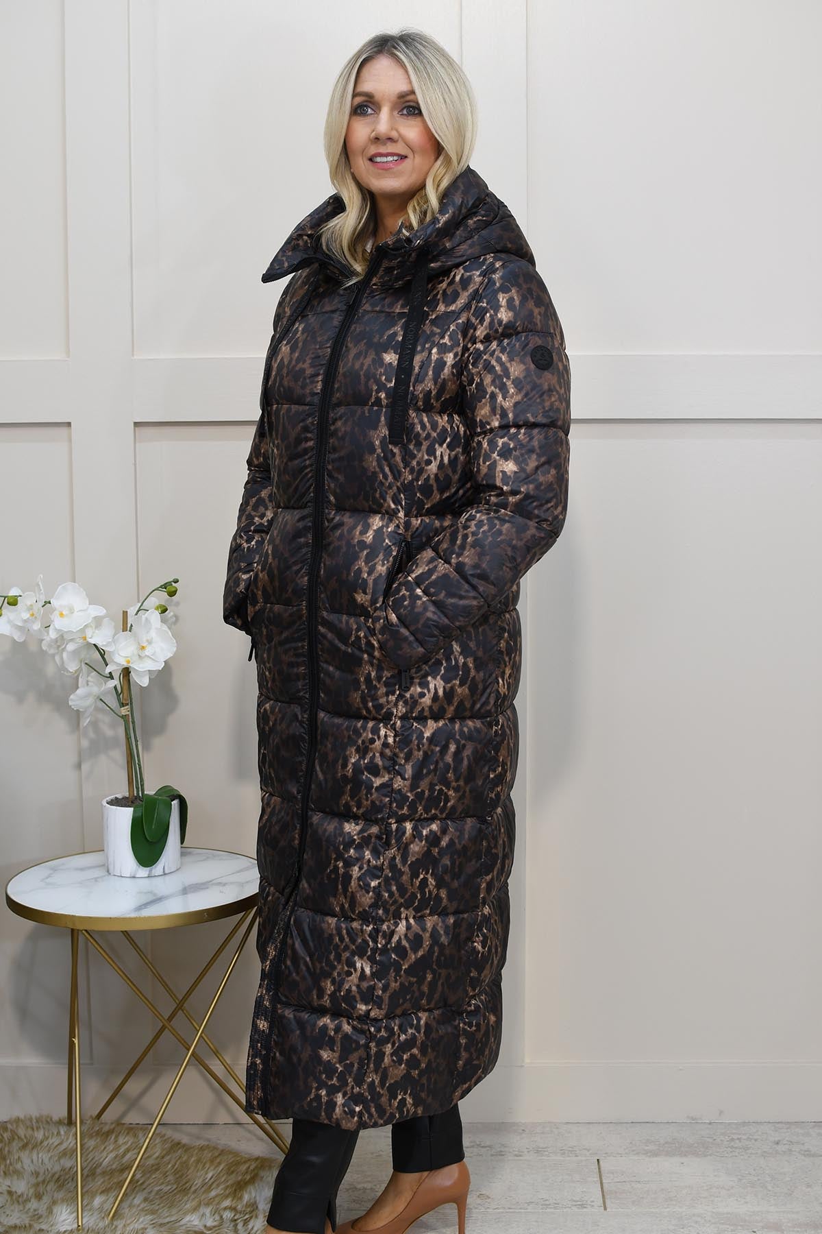 Normann- Long Padded Leopard Print Coat - Bronze -4339 4557 191