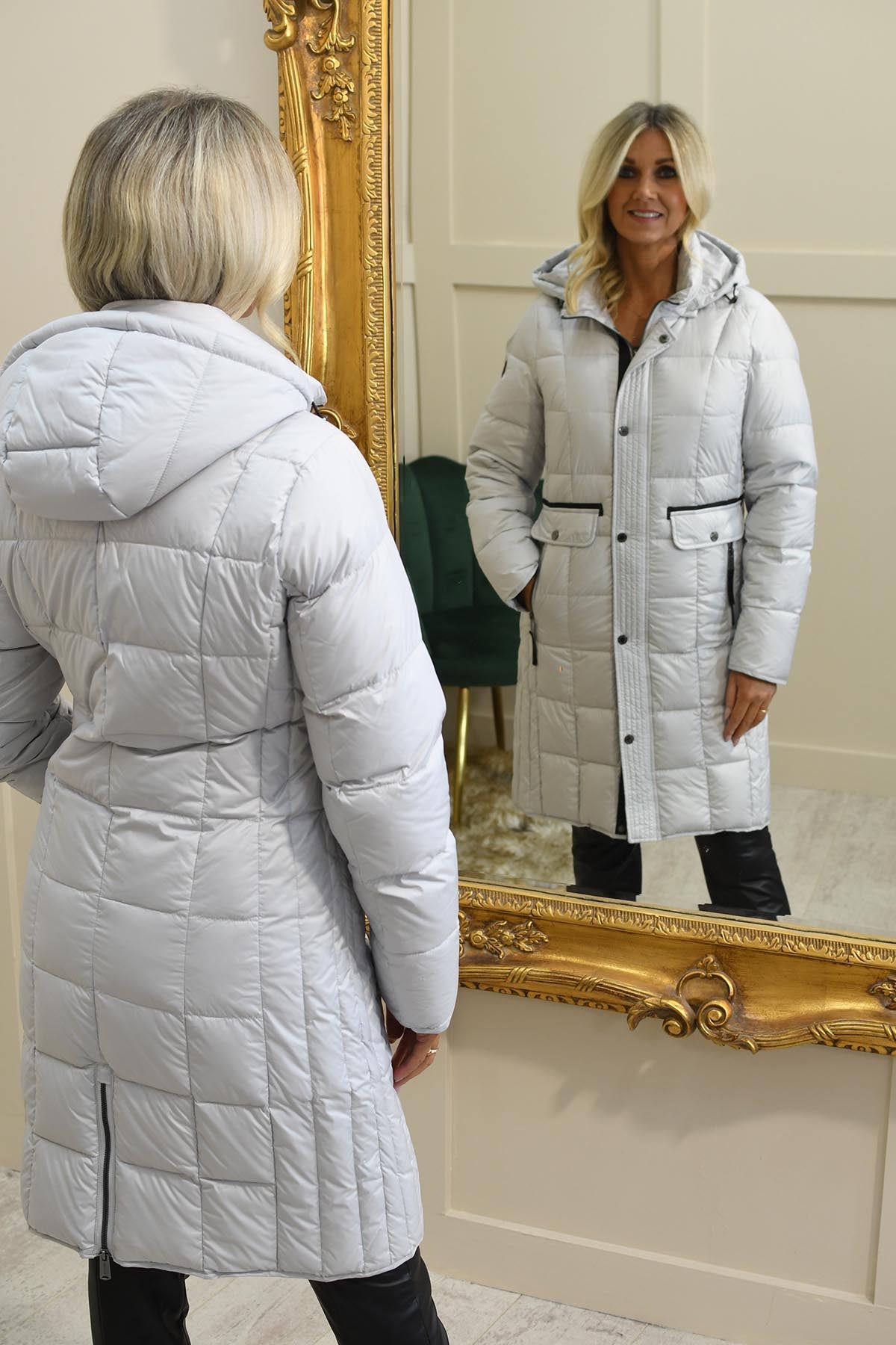 Embrace warmth and sophistication with the Normann Long Real Down Padded Coat in refined silver grey. Crafted from 100% polyester and filled with real down, this coat provides exceptional insulation while remaining lightweight and comfortable. The longline silhouette offers extra coverage and a flattering shape, while the padded design ensures cosy protection without feeling bulky. Sleek and versatile, it layers effortlessly over casual or smart outfits, making it a go-to choice for cold-weather styling. Perfect for winter walks, city outings, or travel, this coat combines practicality with timeless elegance for women who value fashion and function in equal measure.