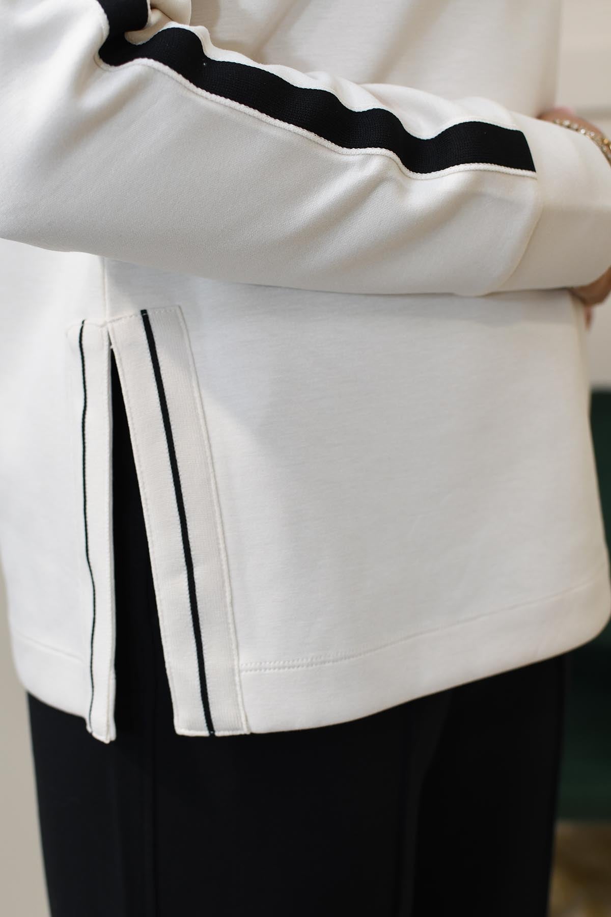 Olsen Beige Pullover With Black Detail & Drawstring Description