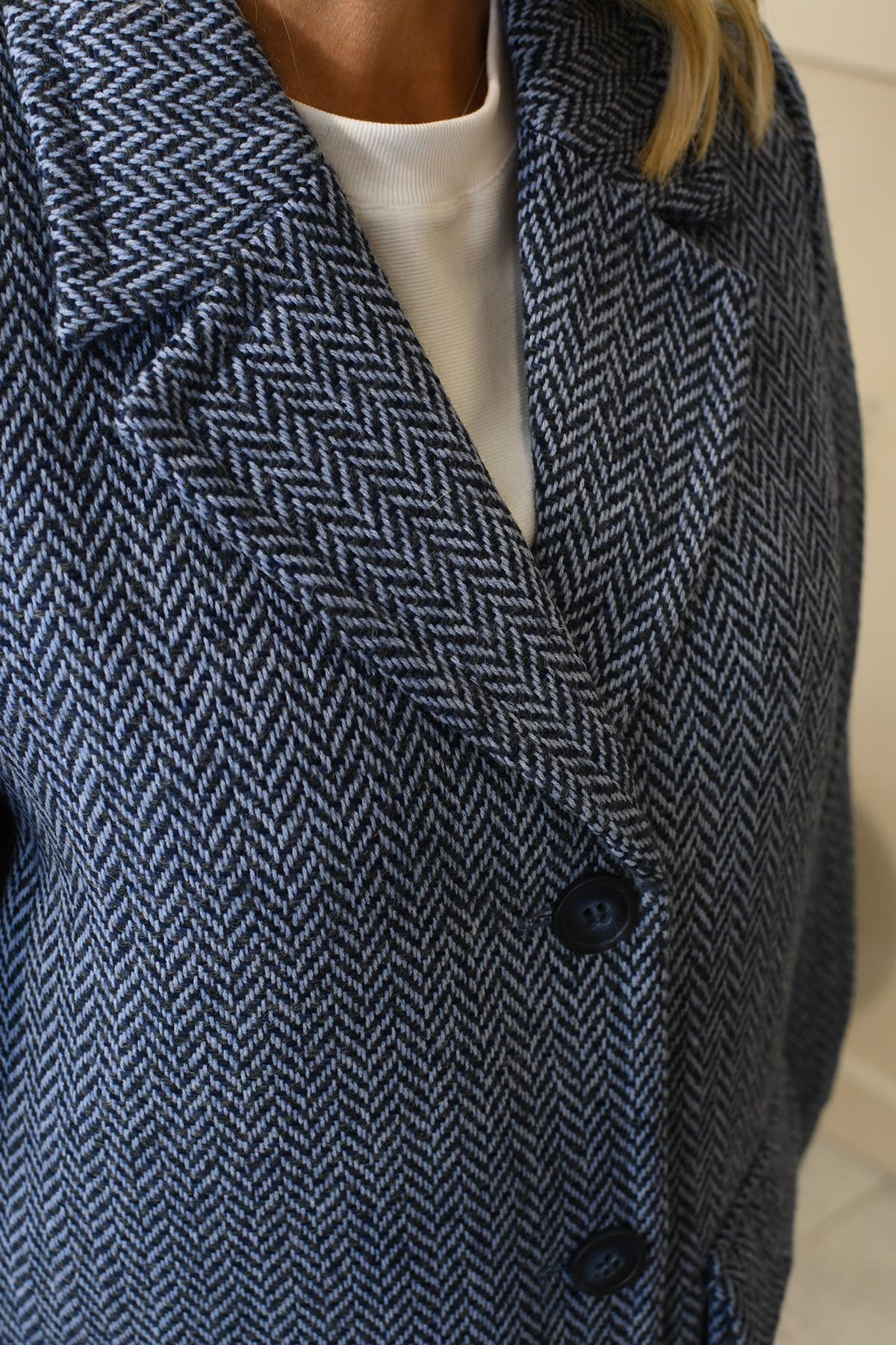 Olsen- Chevron Duster Coat -Multi-Tonal Blue - 15101414