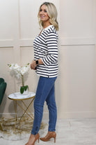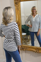 Olsen Cream & Navy Stripe Polo Shirt-11105013