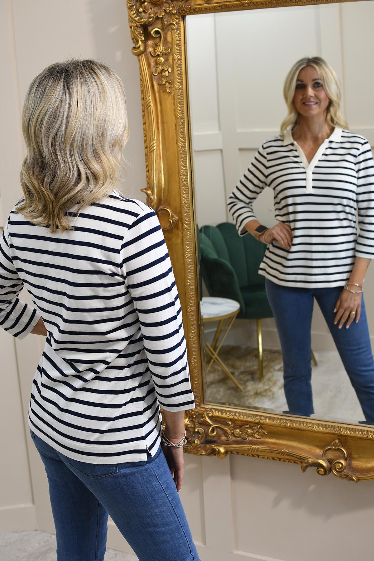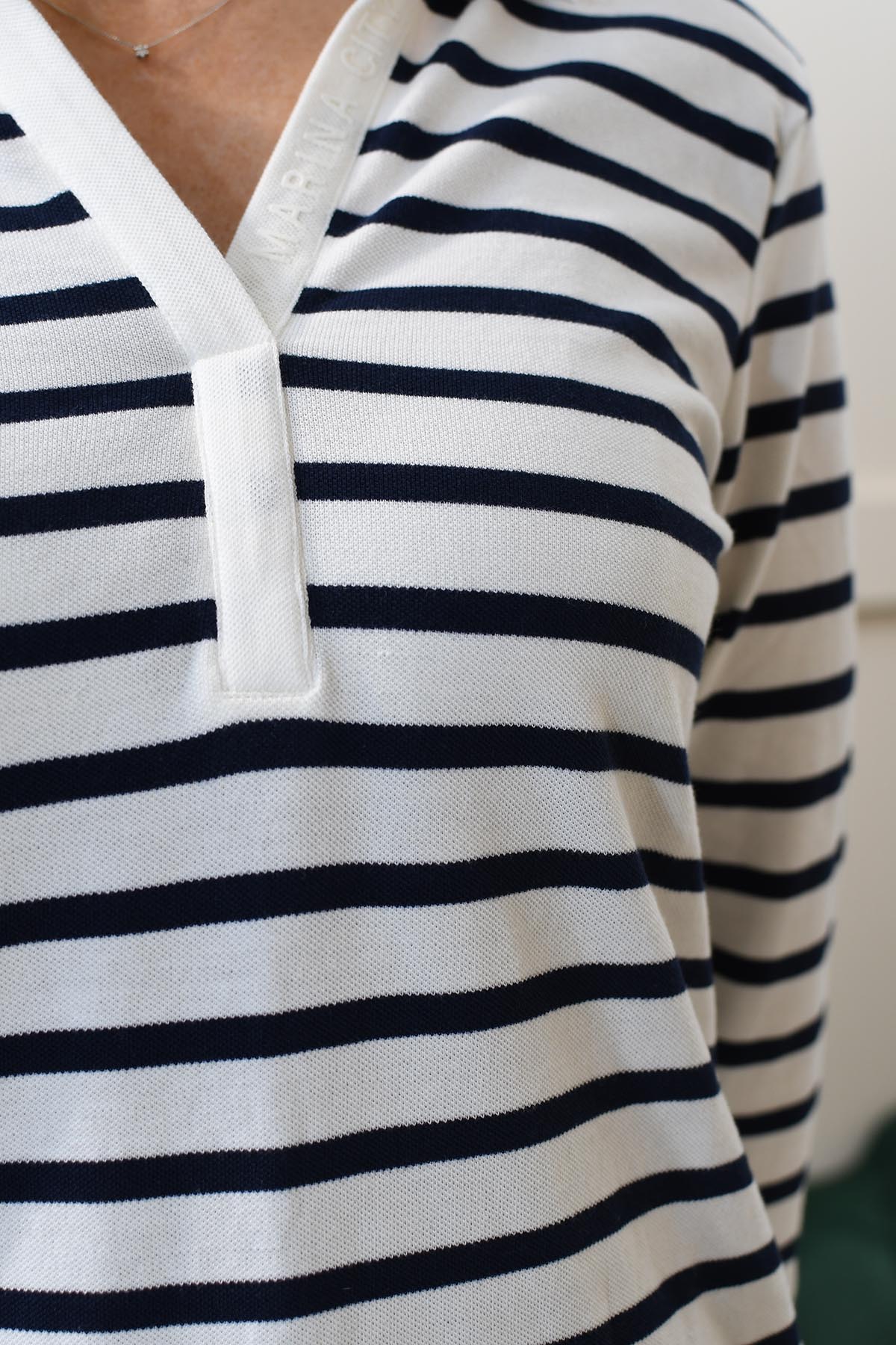 Olsen Cream & Navy Stripe Polo Shirt Additional Information
