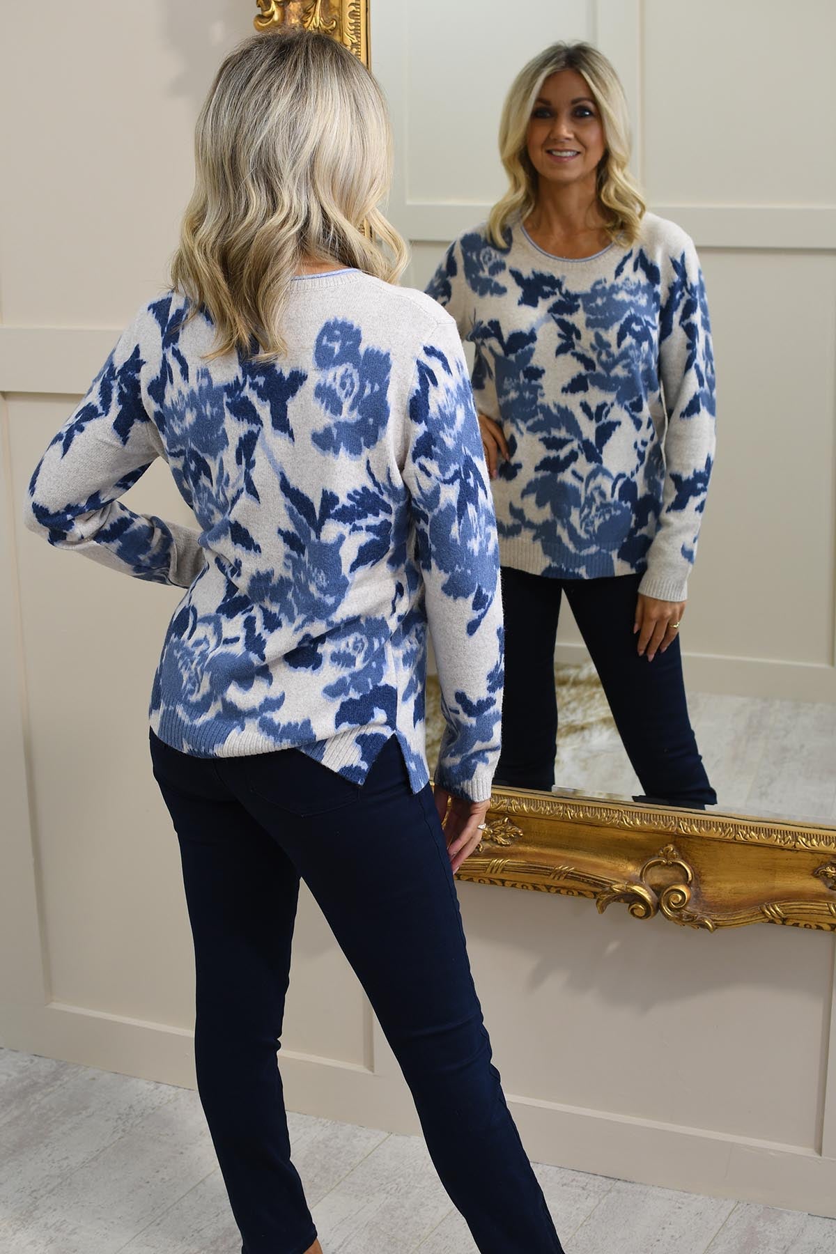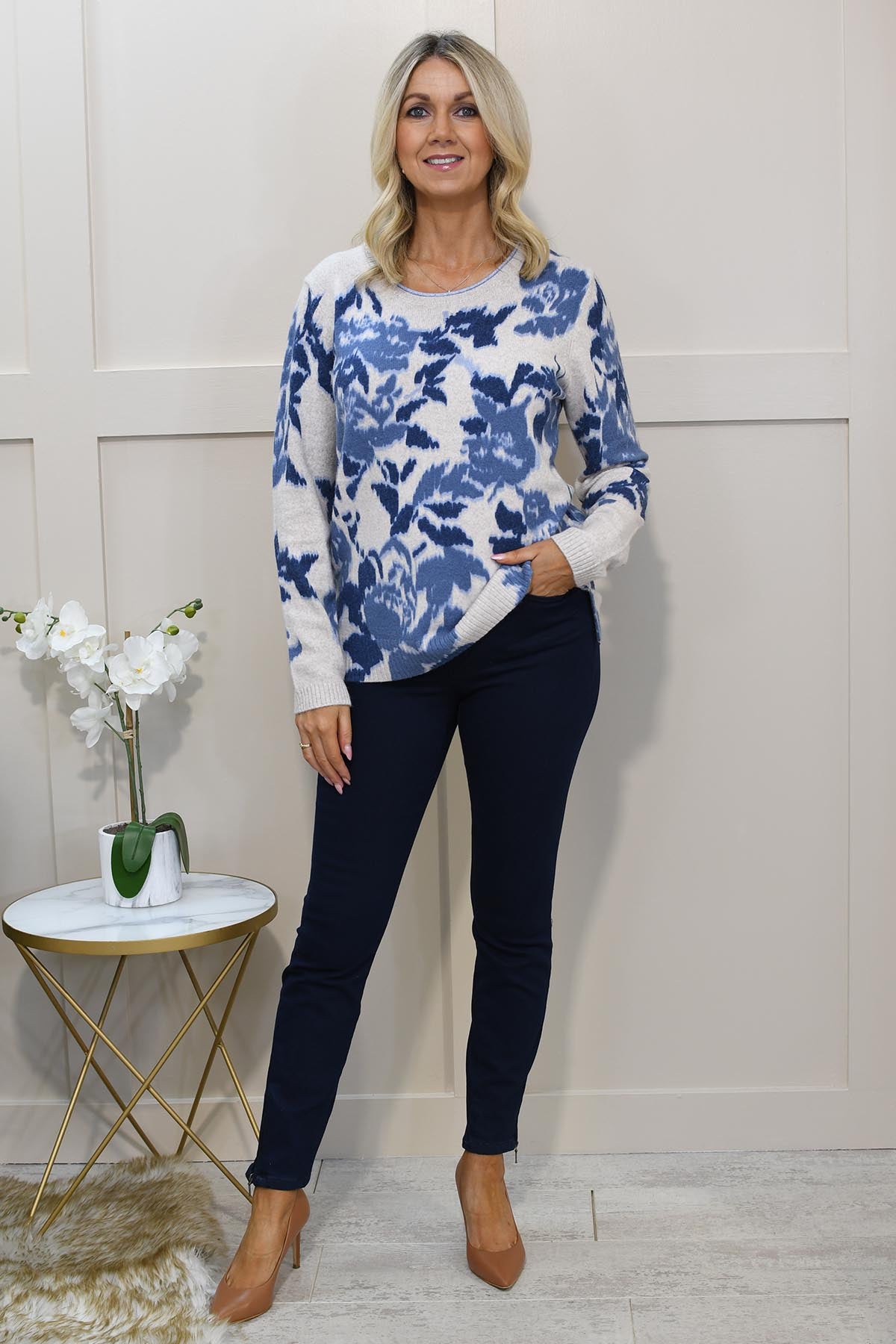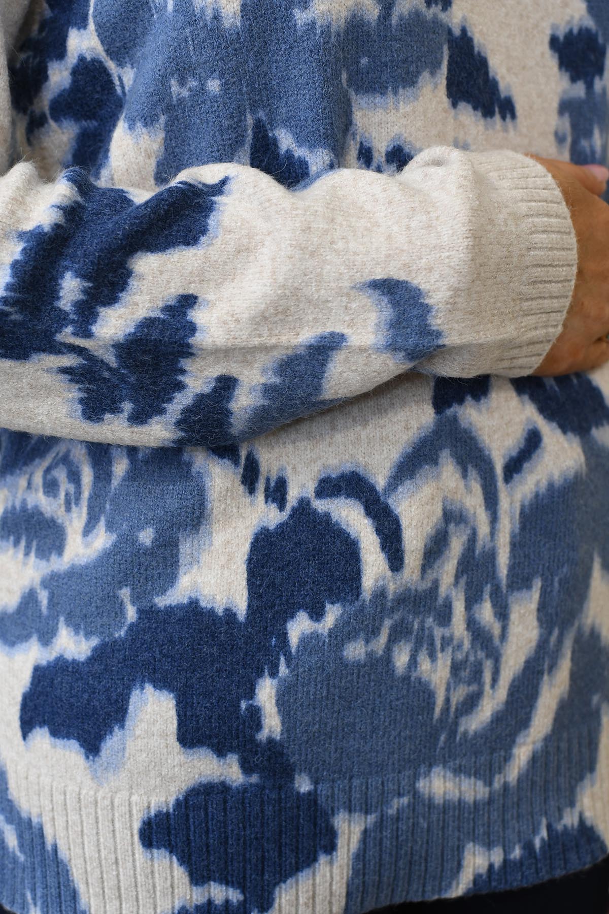 Olsen- Floral Print Sweater -Oatmeal, Azure & Navy- 11004673