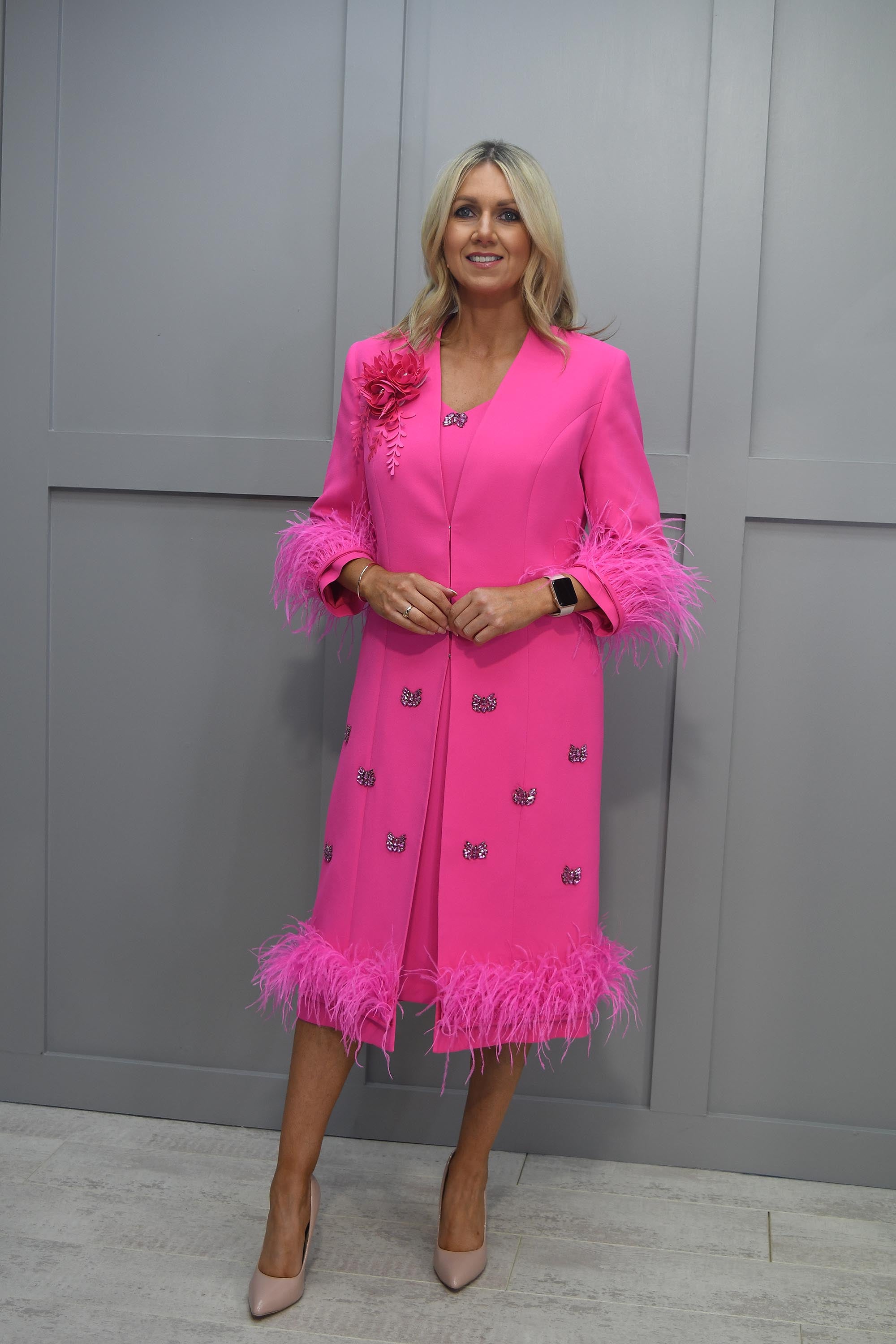 Ophelia Melita Cerise Pink Dress & Coat With Feather Boa Trim & Butterfly Jewel Detail- 631