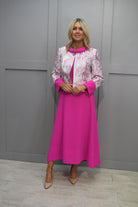 Introducing the Ophelia Melita Hot Pink Dress with Rose Gold Marble Overlay – a vivacious and utterly enchanting ensemble that effortlessly merges bold femininity with contemporary allure. This eye-catching dress is a celebration of colour and texture, designed for the woman who embraces her individuality with style.