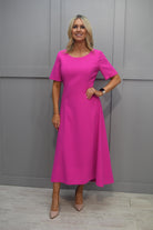 The hot pink hue of the dress commands attention, radiating energy and confidence. The vibrant colour not only captivates the eye but also embodies a spirit of unabashed glamour, making it the perfect choice for those who want to make a statement at any event.