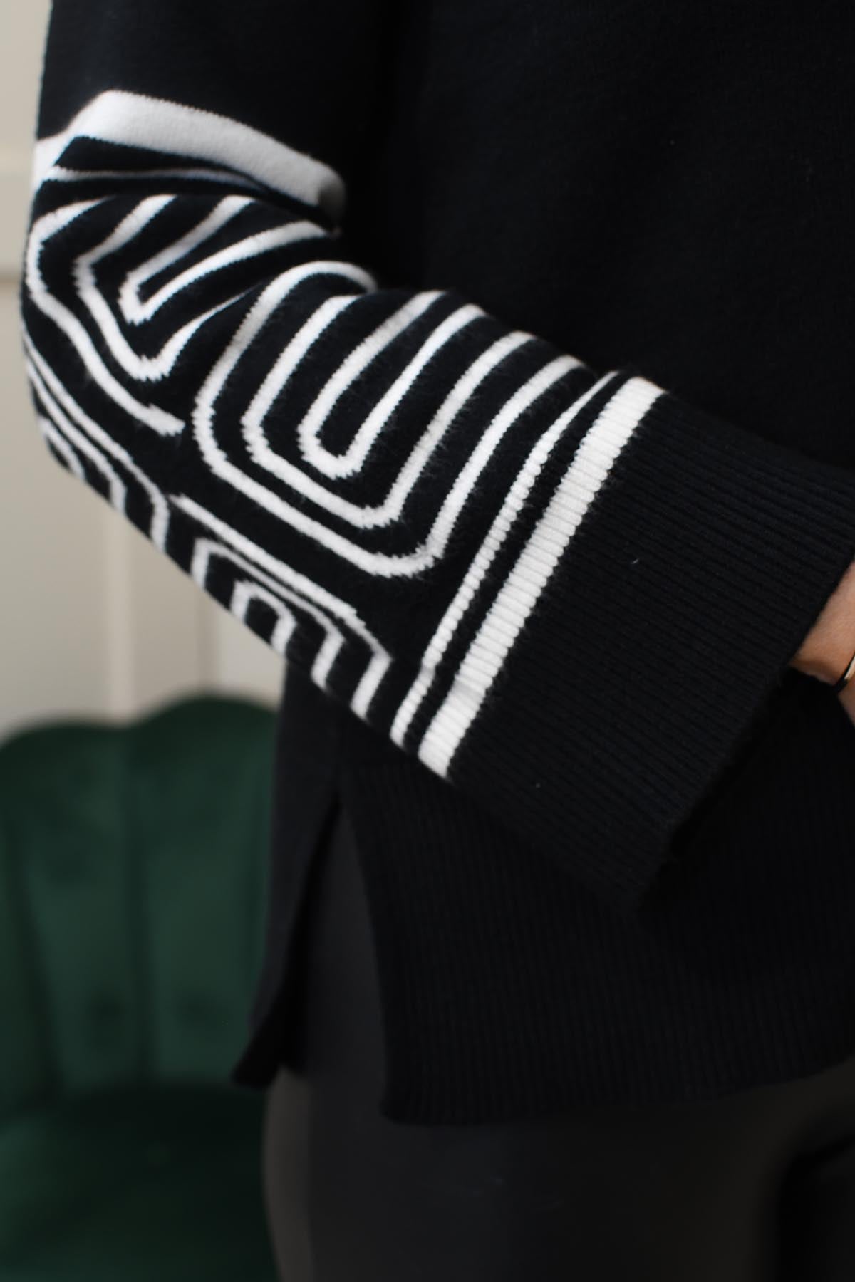 Pomodoro Jacquard Print Sleeve Jumper- Black 12556