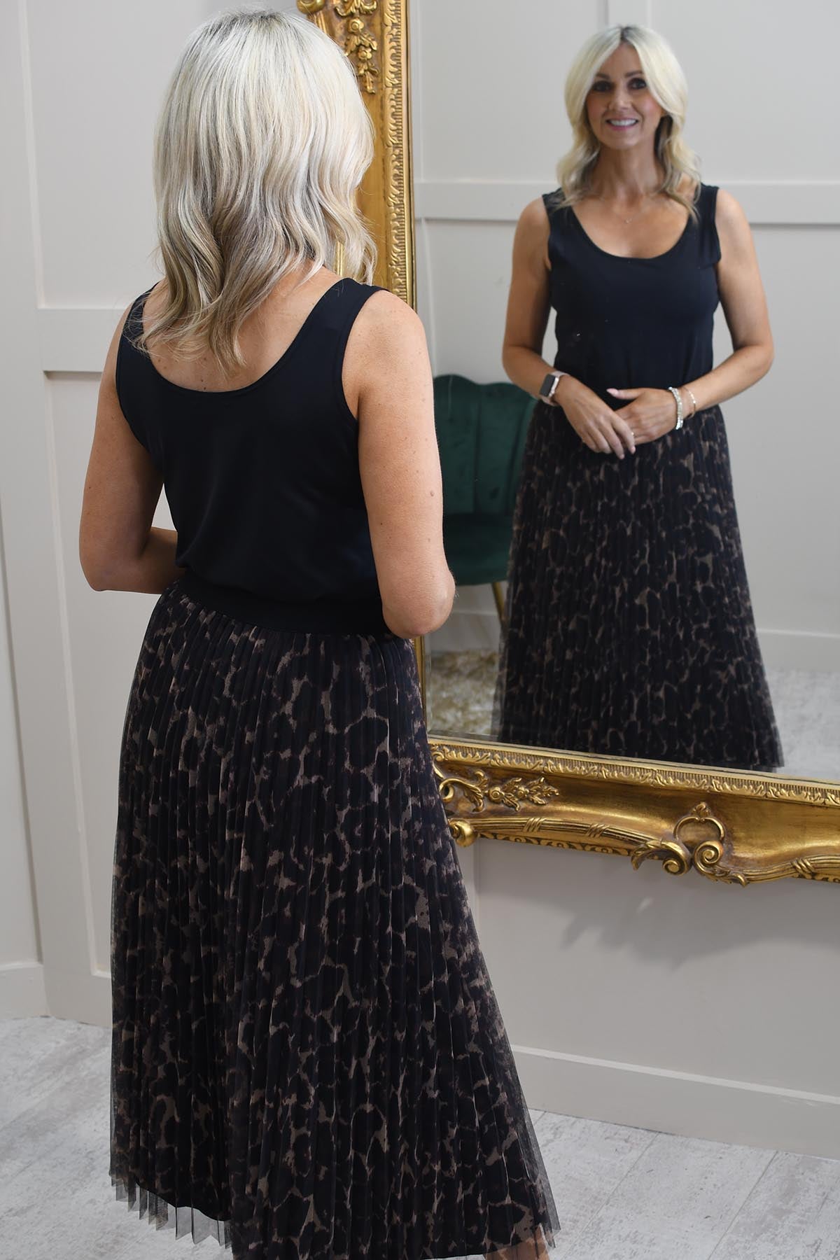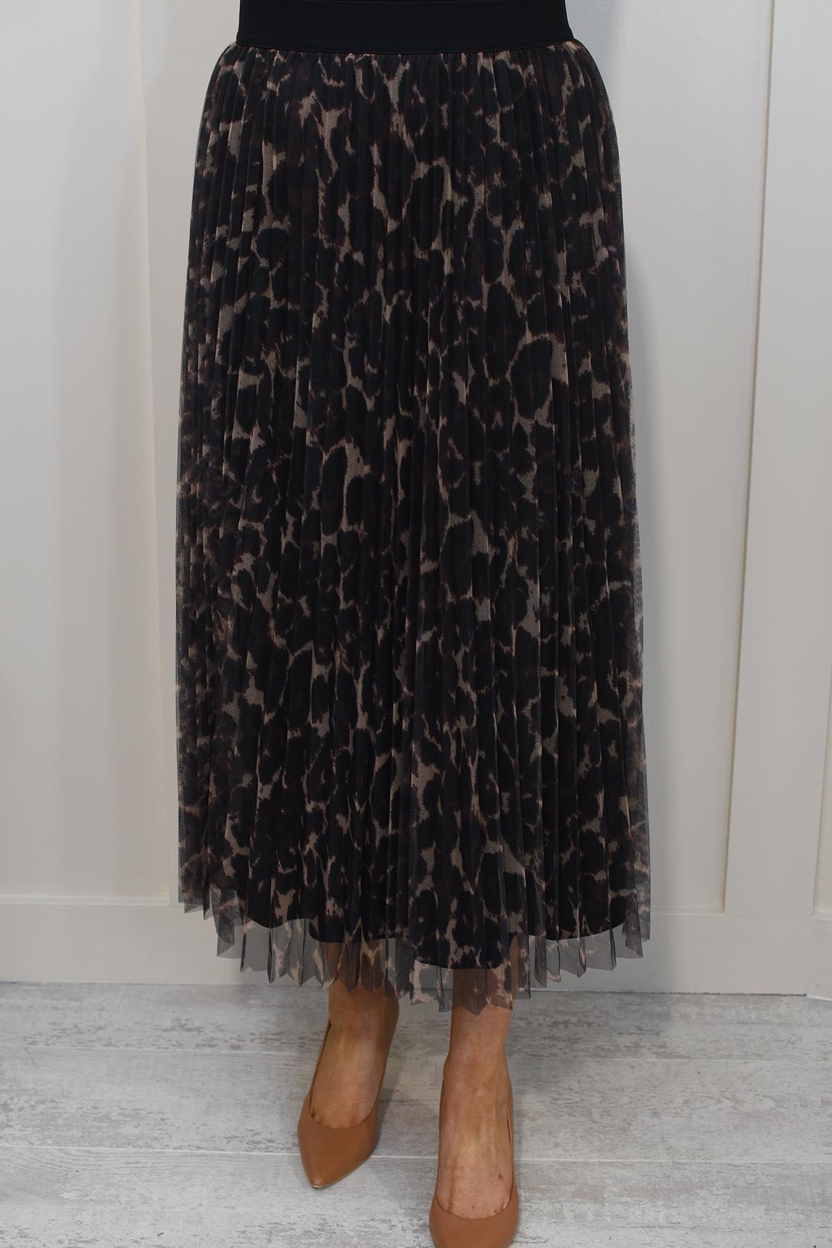 Pomodoro Leopard Print Pleated Midi Skirt- 62456