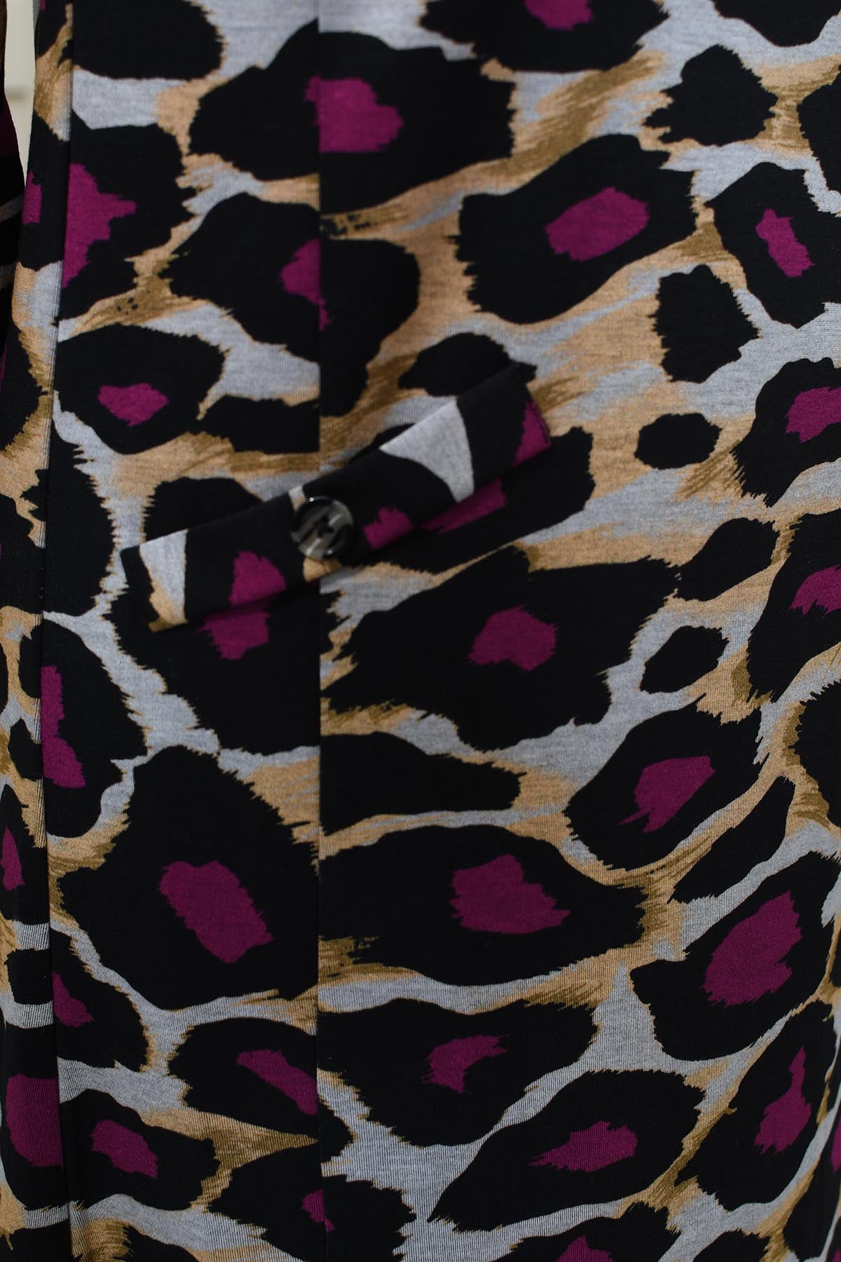 Pomodoro Magenta Animal Print Dress With Faux Pocket Detail - 12456