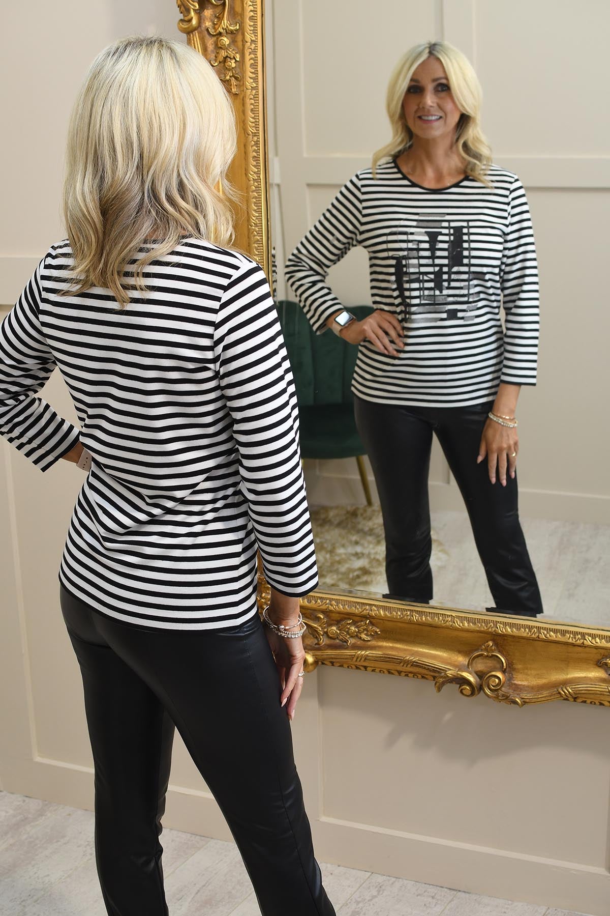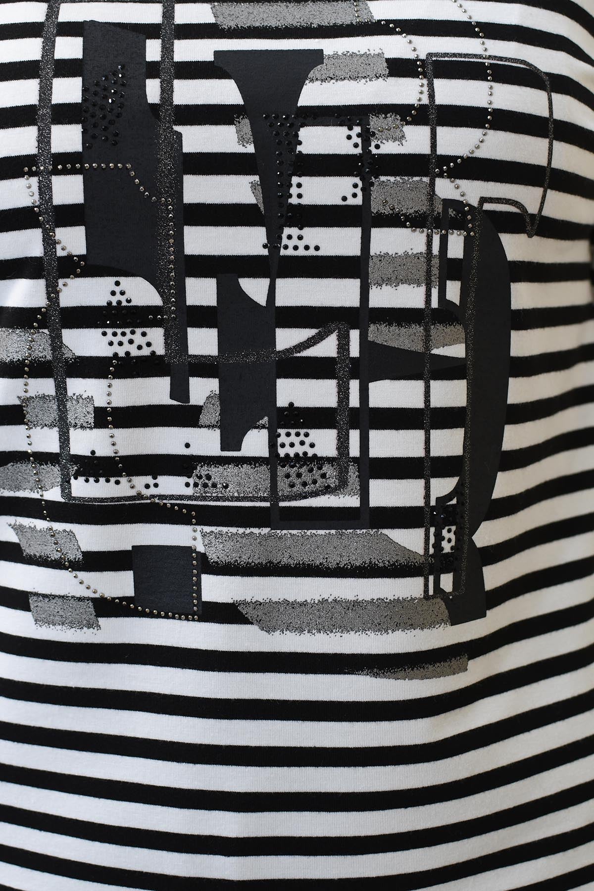 Rabe Black & White Stripe Top With Grey Diamante Graphic-53-121355