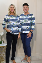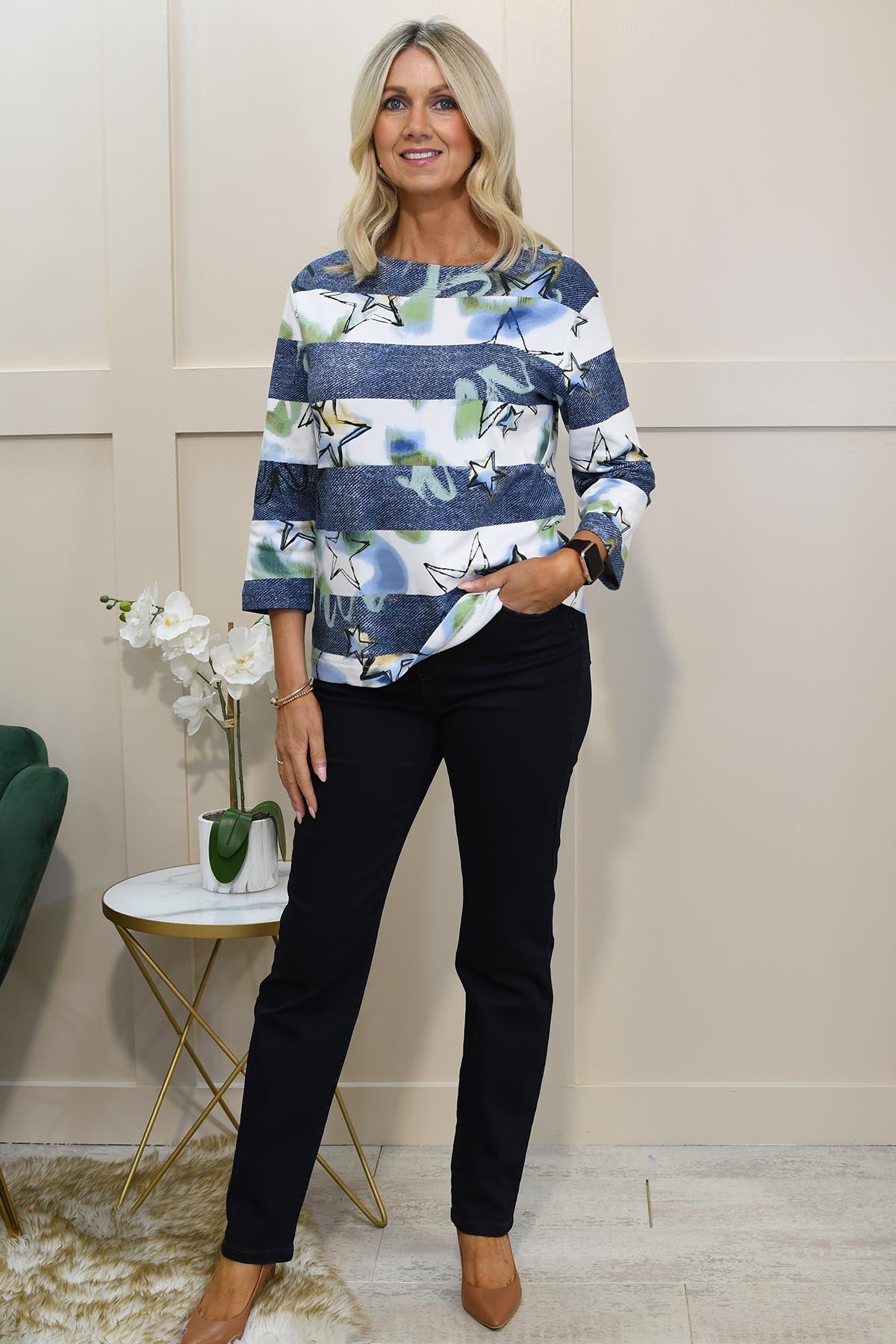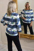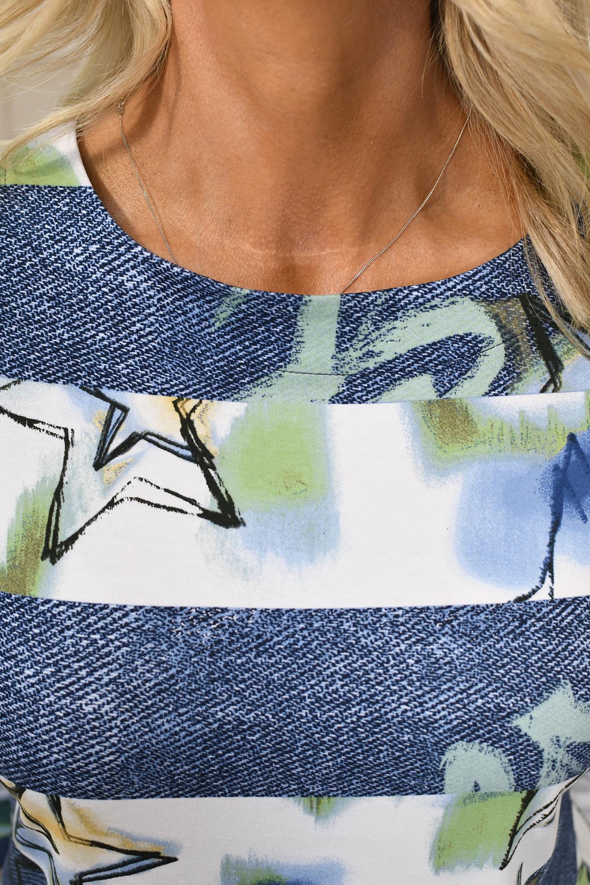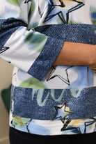 Rabe Denim Blue & Apple Green Stars & Stripe Print Top-55-111357