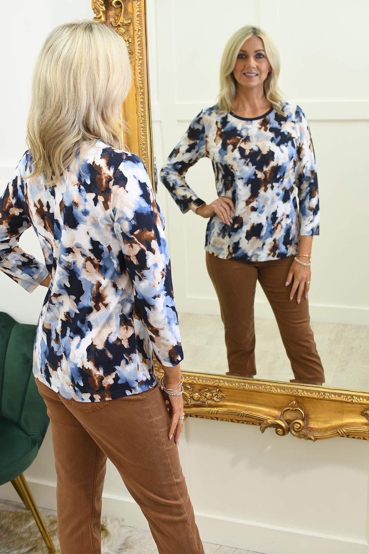 Rabe Navy, Powder Blue & Bronze Paint Effect Top- 53-214351 3374