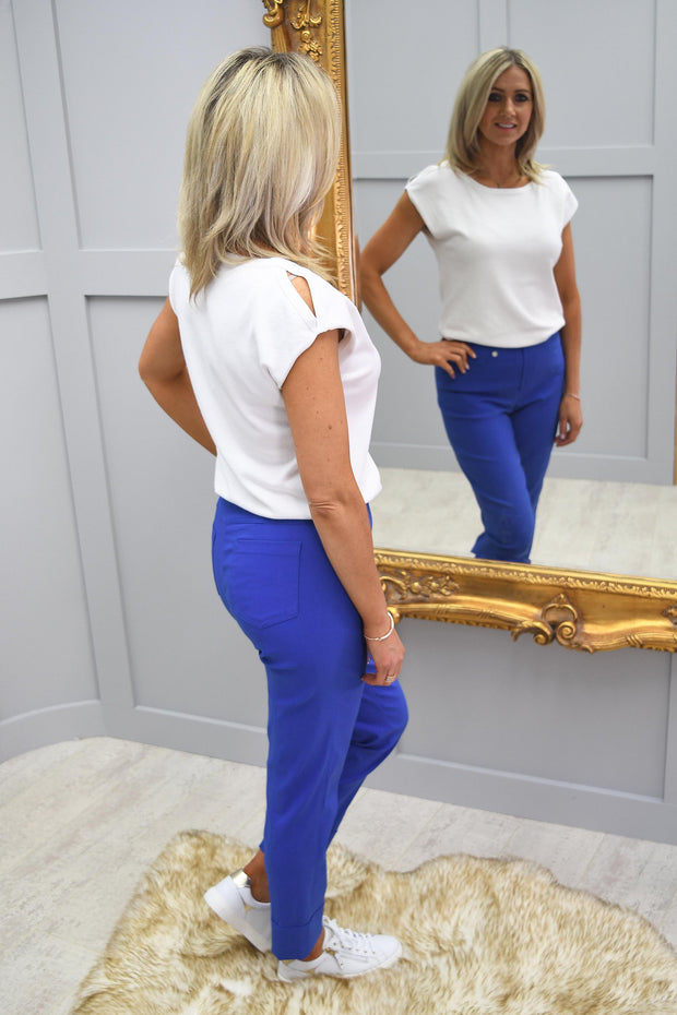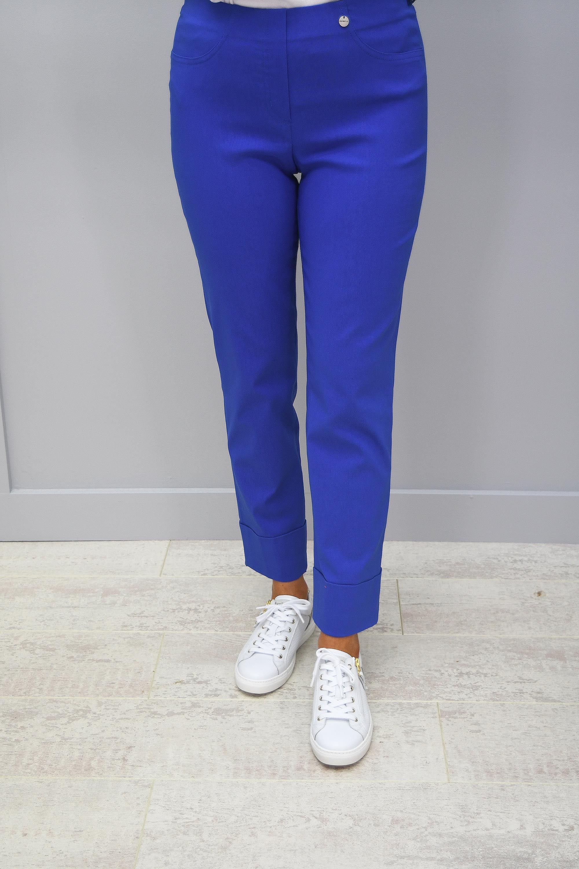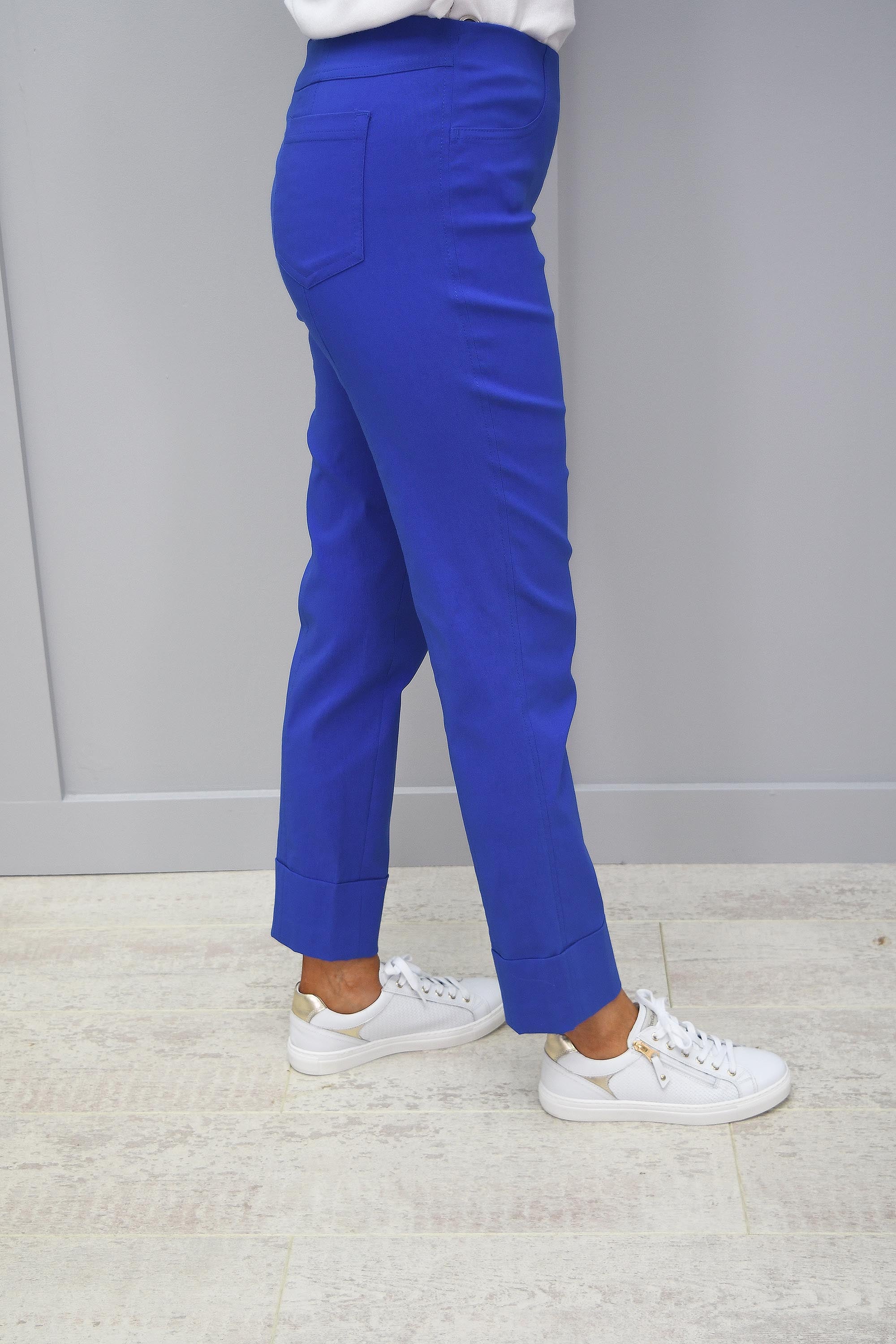 Robell Bella Trousers have an extremely comfy pull on design. With a flat elasticated waistband and clever seams at the back of the legs, this will create the perfect shape for your figure and accentuate all your best areas. Bella also has two false front pockets and two patch back pockets. With a 7/8th length with a chic three inch turn up these trousers will finish at just the perfect length for you lengthen and slim your leg. They are extremely stretchy and light weight with viscose plaster and elastane fabric.