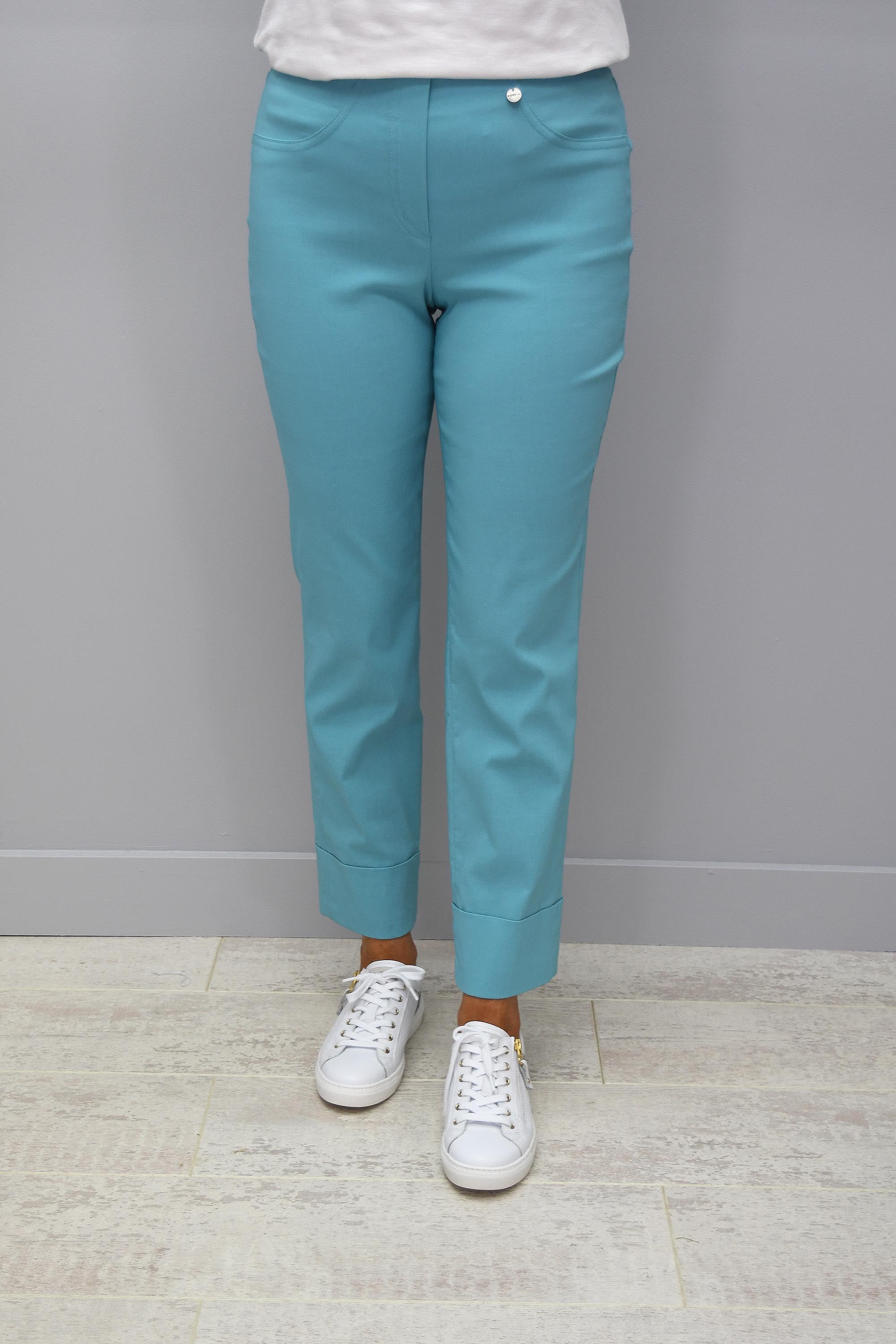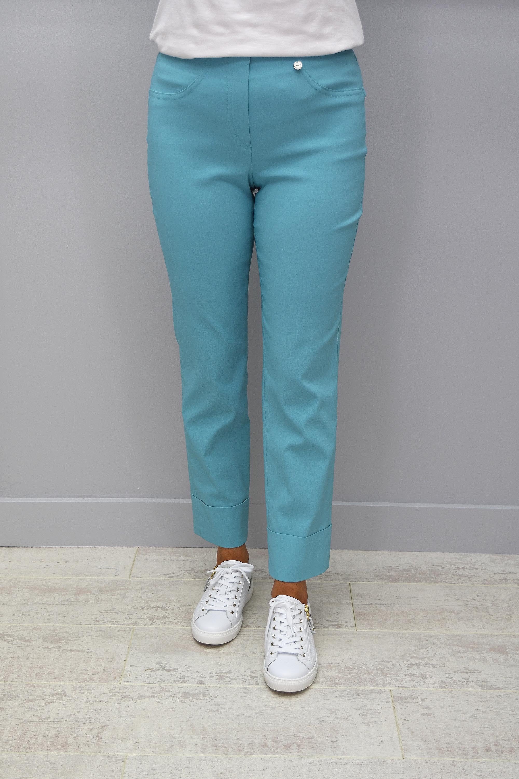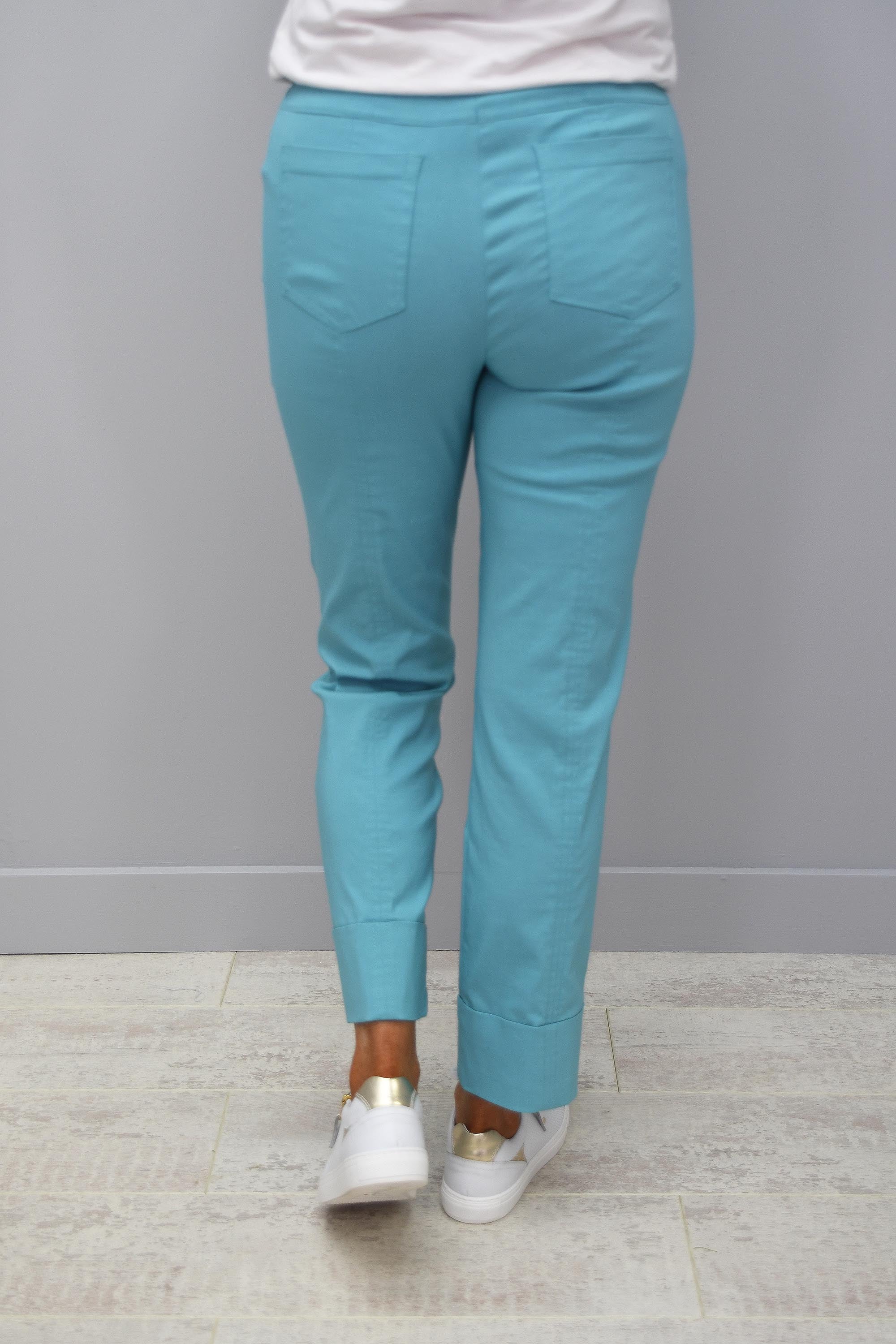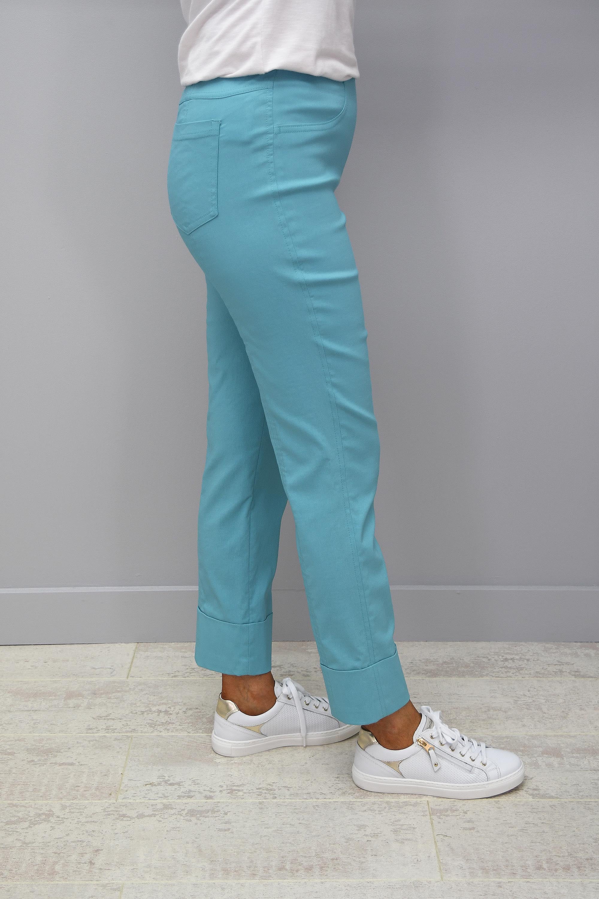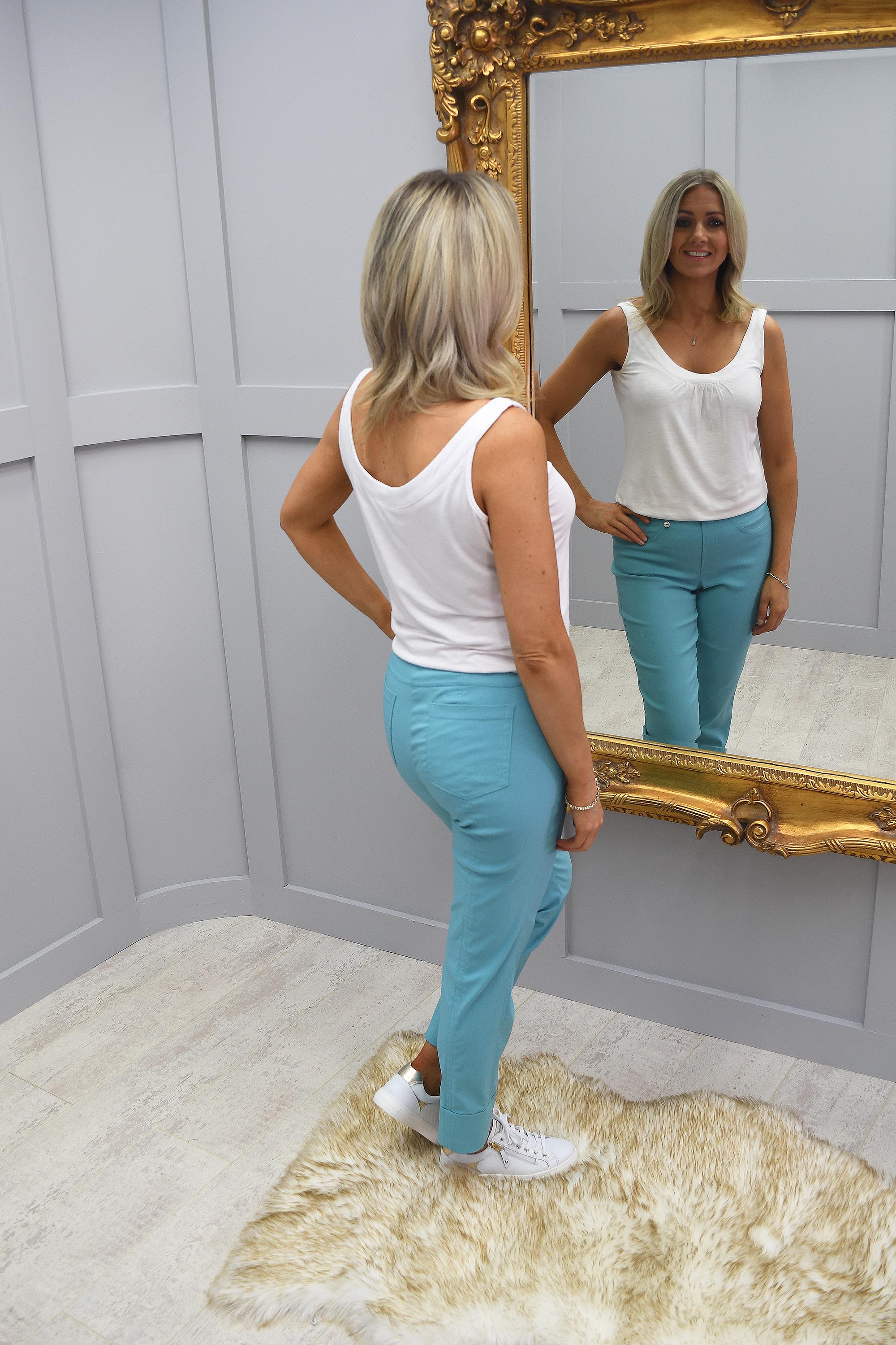 Looking for a trouser that’s both stylish and the perfect fit…well you’ll find it in our Robell Bella Duck Egg Blue Trousers. With an extremely comfortable pull on design and an elasticated waistband, this will create the perfect shape for your figure and accentuate all your best areas. With a gorgeous 7/8th length and a chic three-inch subtle turn up on the bottom, these trousers will finish at just the perfect length. They are extremely stretchy and lightweight, but don’t compromise on quality. These trousers will be your new go-to item with a flattering fit, no zips or buttons and two understated pockets. Meeting up with friends for lunch or dinner, then add a heel and a dressy top and you’re ready for the off! Heading abroad this summer? Pack your Robell Bella Duck Egg Blue Trousers into your case and you’re ready for your evening out in the sun. Comfortable and classy…the perfect combination.