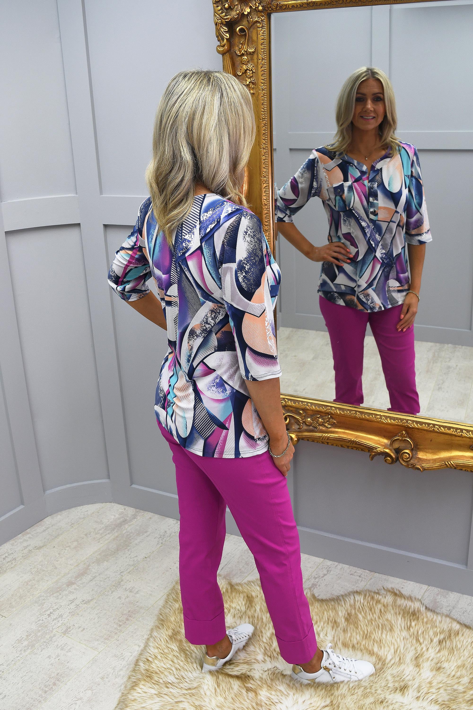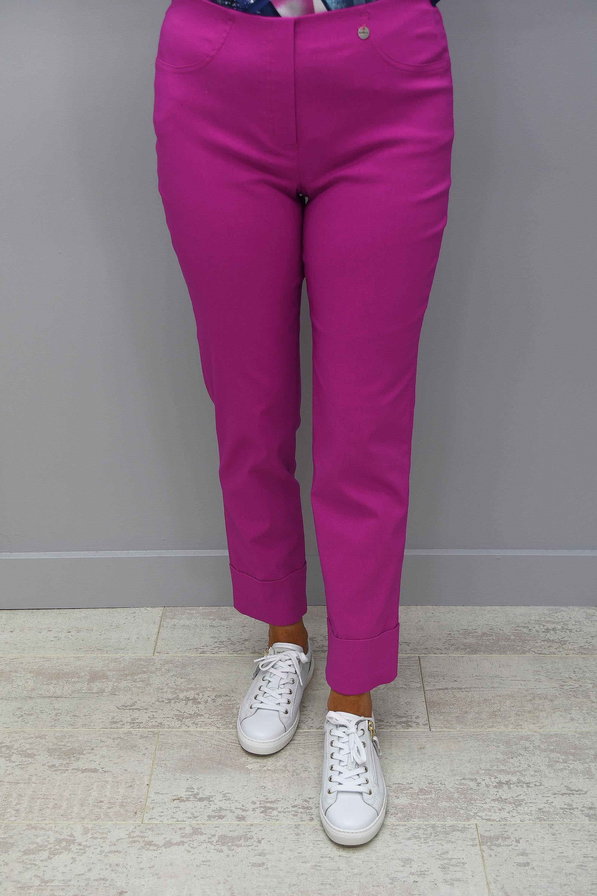 Looking for a trouser that’s both stylish and the perfect fit…well you’ll find it in our Robell Bella Bubblegum Pink Trousers. With an extremely comfortable pull on design and an elasticated waistband, this will create the perfect shape for your figure and accentuate all your best areas. With a gorgeous 7/8th length and a chic three-inch subtle turn up on the bottom, these trousers will finish at just the perfect length. They are extremely stretchy and lightweight, but don’t compromise on quality. These trousers will be your new go-to item with a flattering fit, no zips or buttons and two understated pockets. Meeting up with friends for lunch or dinner, then add a heel and a dressy top and you’re ready for the off! Heading abroad this summer? Pack your Robell Bella Bubblegum Pink Trousers into your case and you’re ready for your evening out in the sun. Comfortable and classy…the perfect combination.