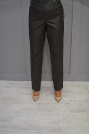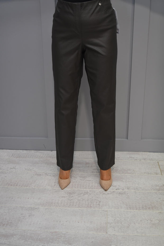 Robell Bella Faux Leather Full Length Trousers -Khaki 51559 54344 88