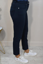 The deep navy hue of these jeans exudes sophistication and pairs seamlessly with a variety of tops and footwear. Whether you're dressing for a casual day out or a night on the town, these jeans provide a versatile base for countless outfit possibilities.