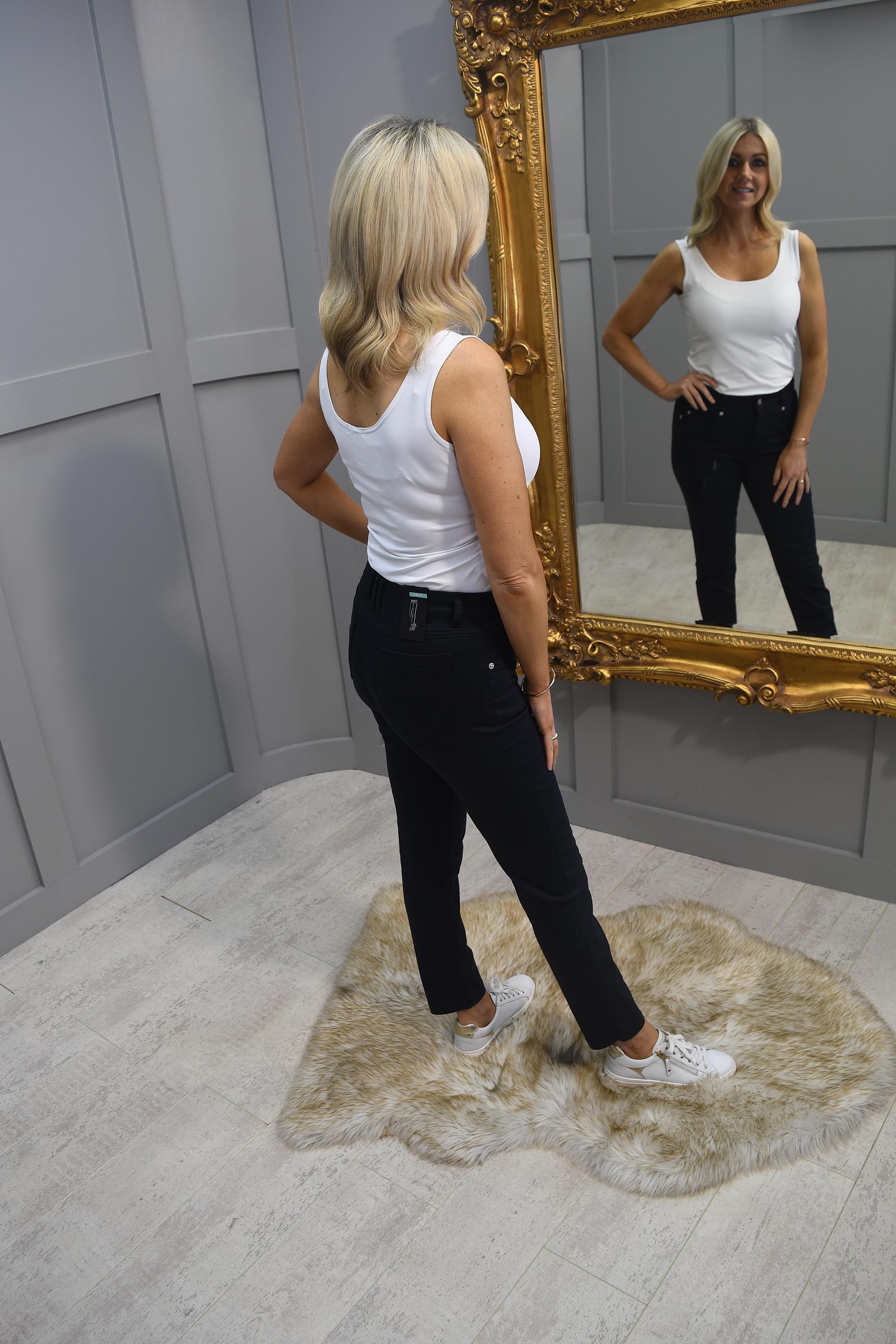 Our Model Rhonda wears size 10 & is 5ft 6”.