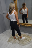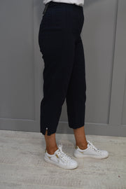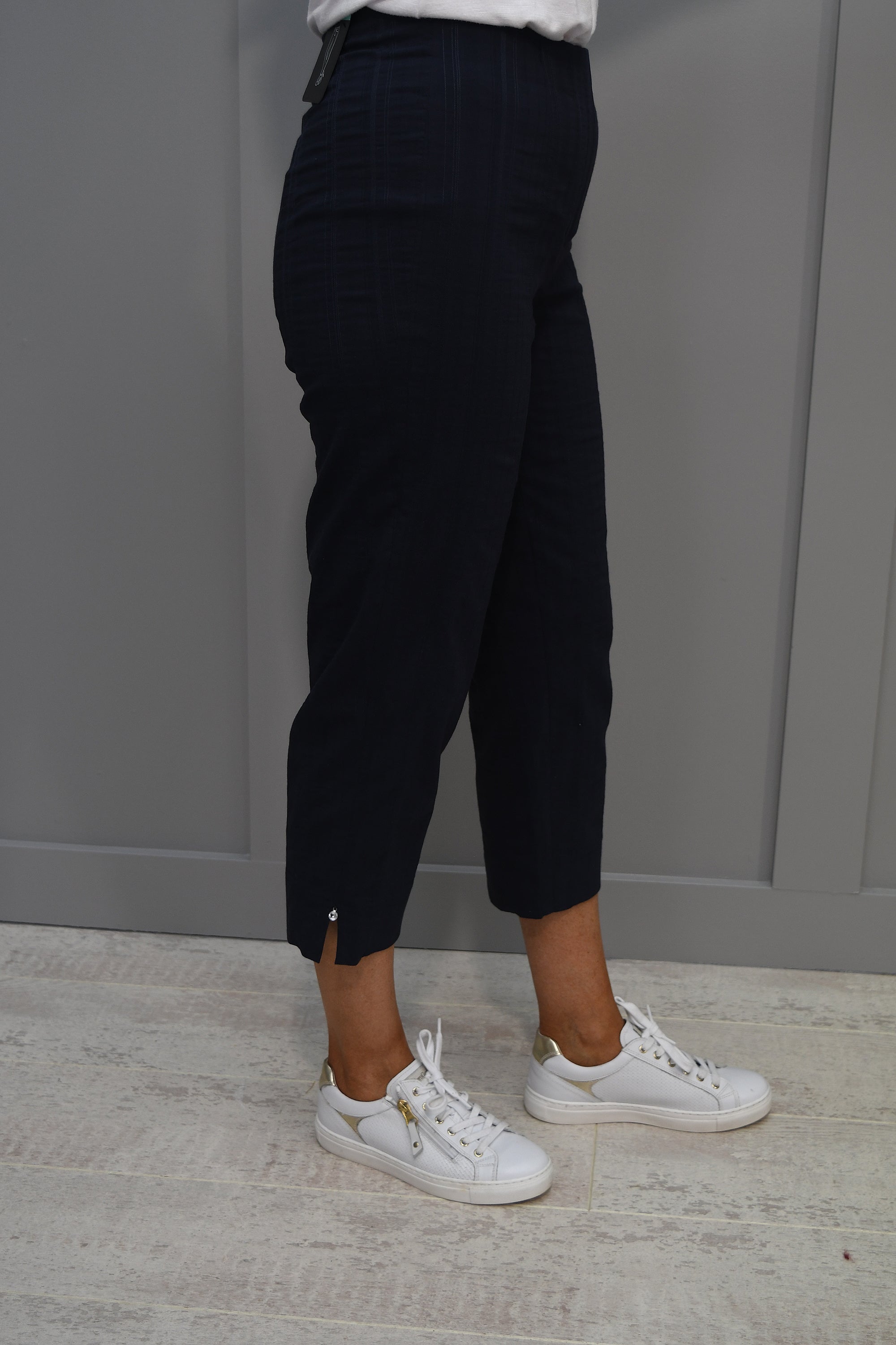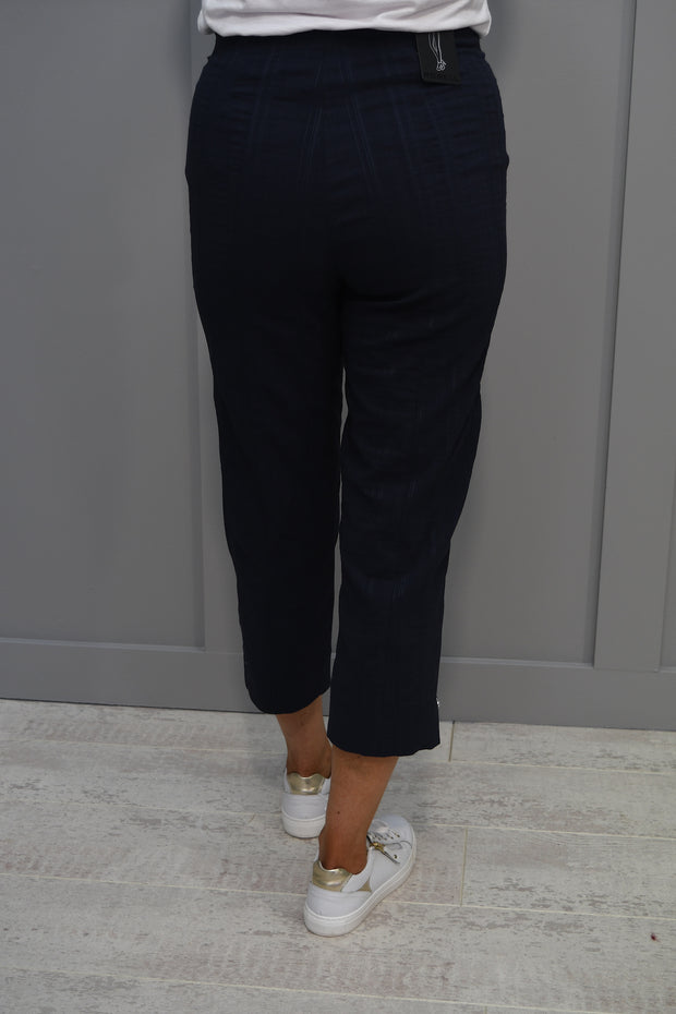 Robell Marie 07 Seersucker Crop Trouser With Diamante Detail - Navy 51576 54554 69