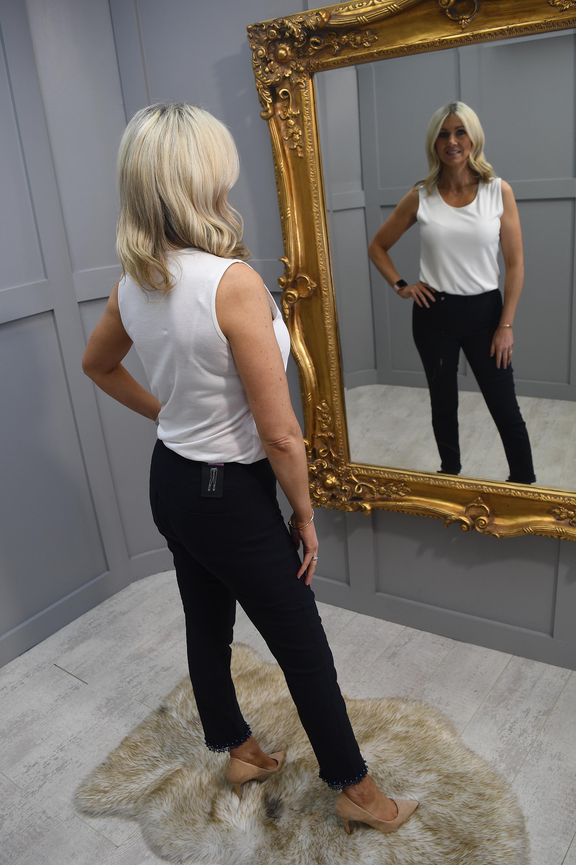 Our Model Rhonda wears size 10 & is 5ft 6”.