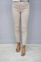 The perfect trouser! Taking comfort and style to a new level is our Robell Rose Beige Trousers. With an incredibly comfortable pull on design with a flat elasticated waistband and a clever seam, allowing you to achieve your perfect shape and accentuate your waistline. Featuring the beautiful 7/8 leg length and a super slim fit on the leg, these Robell Rose Trousers deliver a slimmer looking leg and an amazing all-round shape. The cigarette style finish is completely on-trend this season making these trousers a perfect addition to every woman’s wardrobe! Wear all day long with comfort and still look your best! Style with a dressy top and a pair of your favourite heels for a gorgeous evening look. Look and feel your best this season in our Robell Rose Beige Trousers.