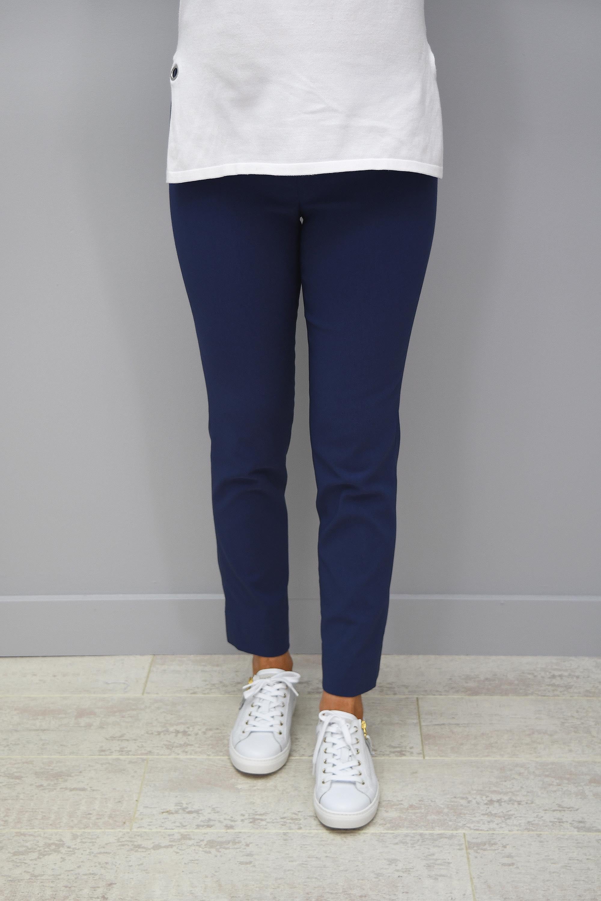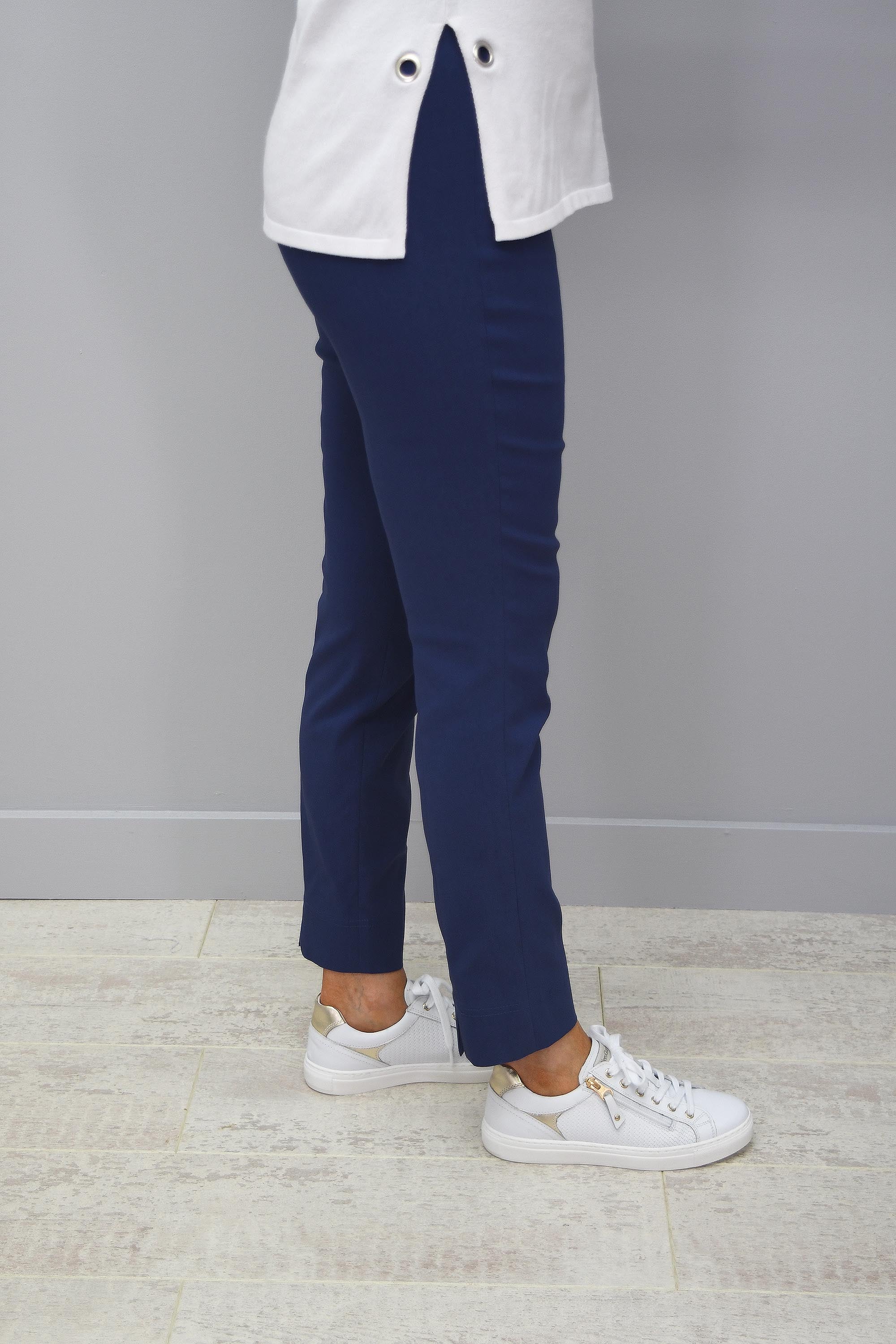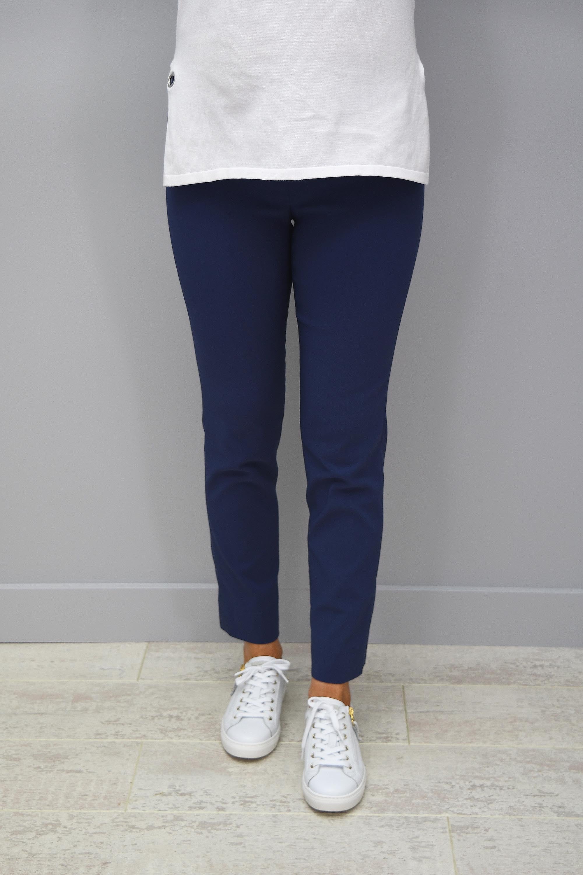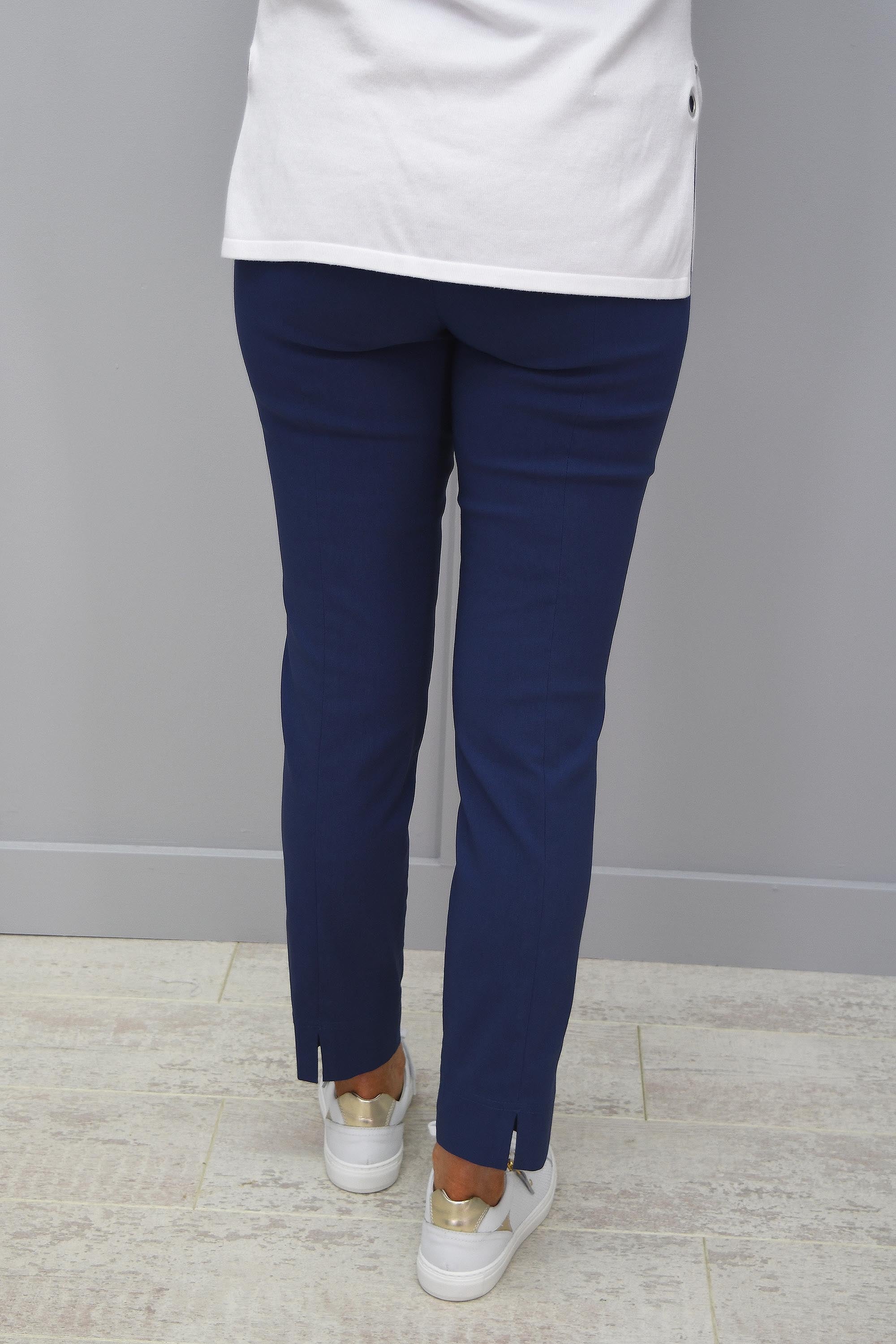The perfect trouser! Taking comfort and style to a new level is our Robell Rose Airforce Blue Trousers. With an incredibly comfortable pull on design with a flat elasticated waistband and a clever seam, allowing you to achieve your perfect shape and accentuate your waistline. Featuring the beautiful 7/8 leg length and a super slim fit on the leg, these Robell Rose Trousers deliver a slimmer looking leg and an amazing all-round shape. The cigarette style finish is completely on-trend this season making these trousers a perfect addition to every woman’s wardrobe! Wear all day long with comfort and still look your best! Style with a dressy top and a pair of your favourite heels for a gorgeous evening look. Look and feel your best this season in our Robell Rose Air Force Blue Trousers.