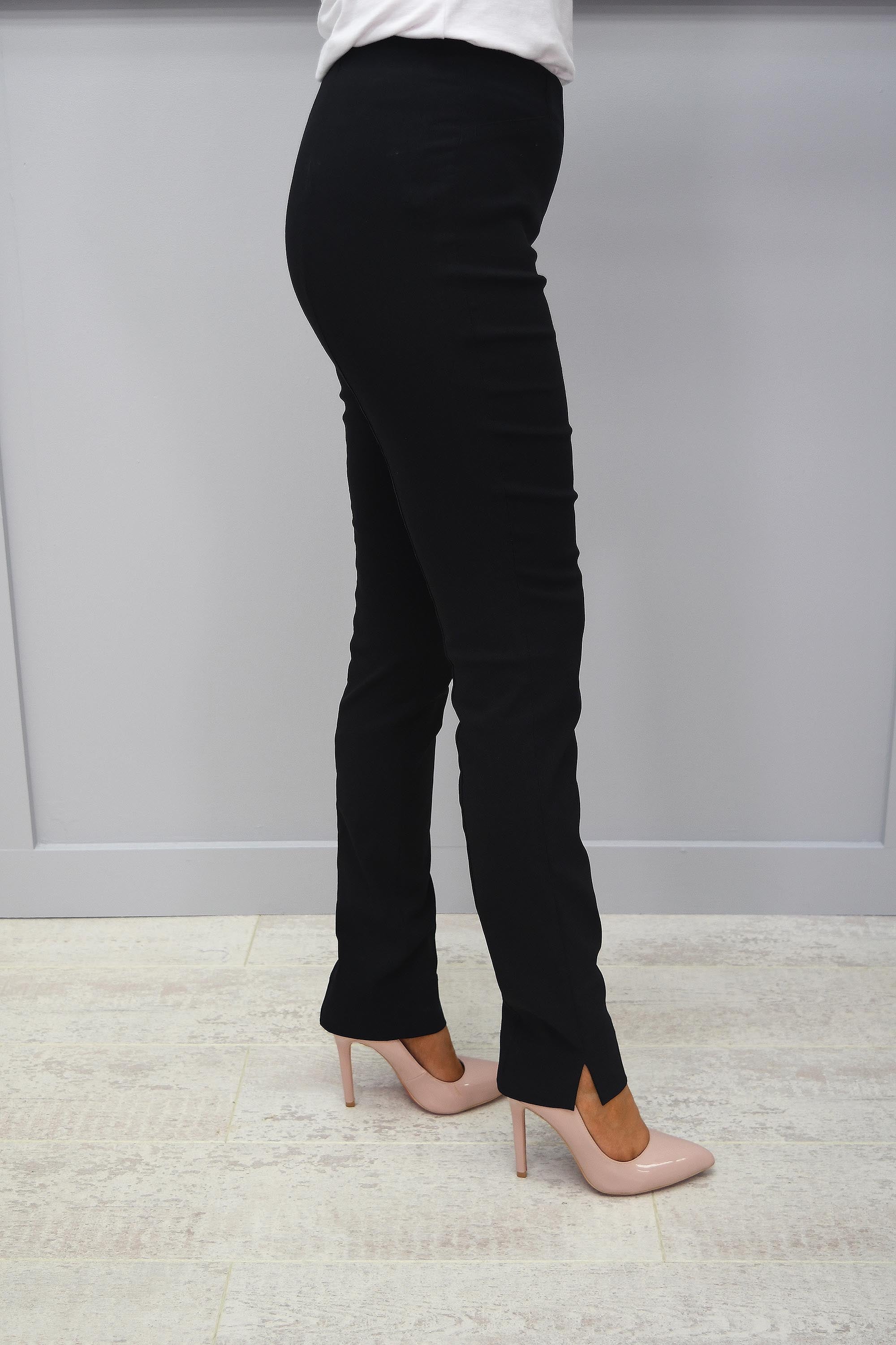 The perfect trouser! Taking comfort and style to a new level is our Robell Rose Black Full Length Trousers Super Slim Fit. With an incredibly comfortable pull on design with a flat elasticated waistband and a clever seam, they allow you to achieve your perfect shape and accentuate your waistline. Featuring the beautiful full leg length and a super slim fit on the leg, these Robell Rose Trousers deliver a slimmer looking leg and an amazing all-round shape. The super slim finish is completely on-trend this season making these trousers a perfect addition to every woman’s wardrobe! Wear all day long with comfort and still look your best! Style with a dressy top and a pair of your favourite heels for a gorgeous evening look. Look and feel your best this season in our Robell Rose Black Full Length Trousers Super Slim Fit.