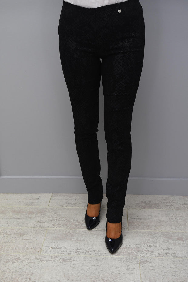 Robell Rose Patterned Full Length Trouser Super Slim Fit - Black 51673 54825 90