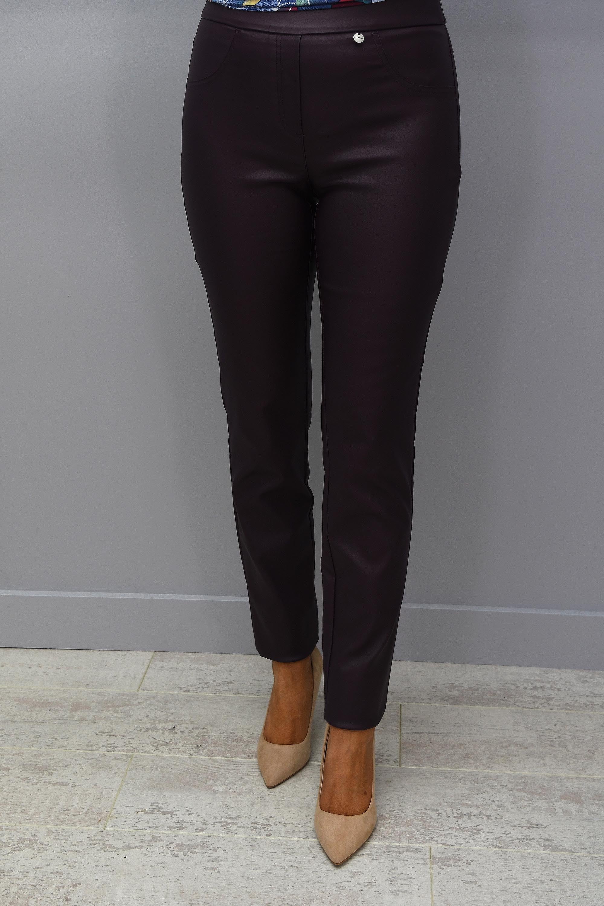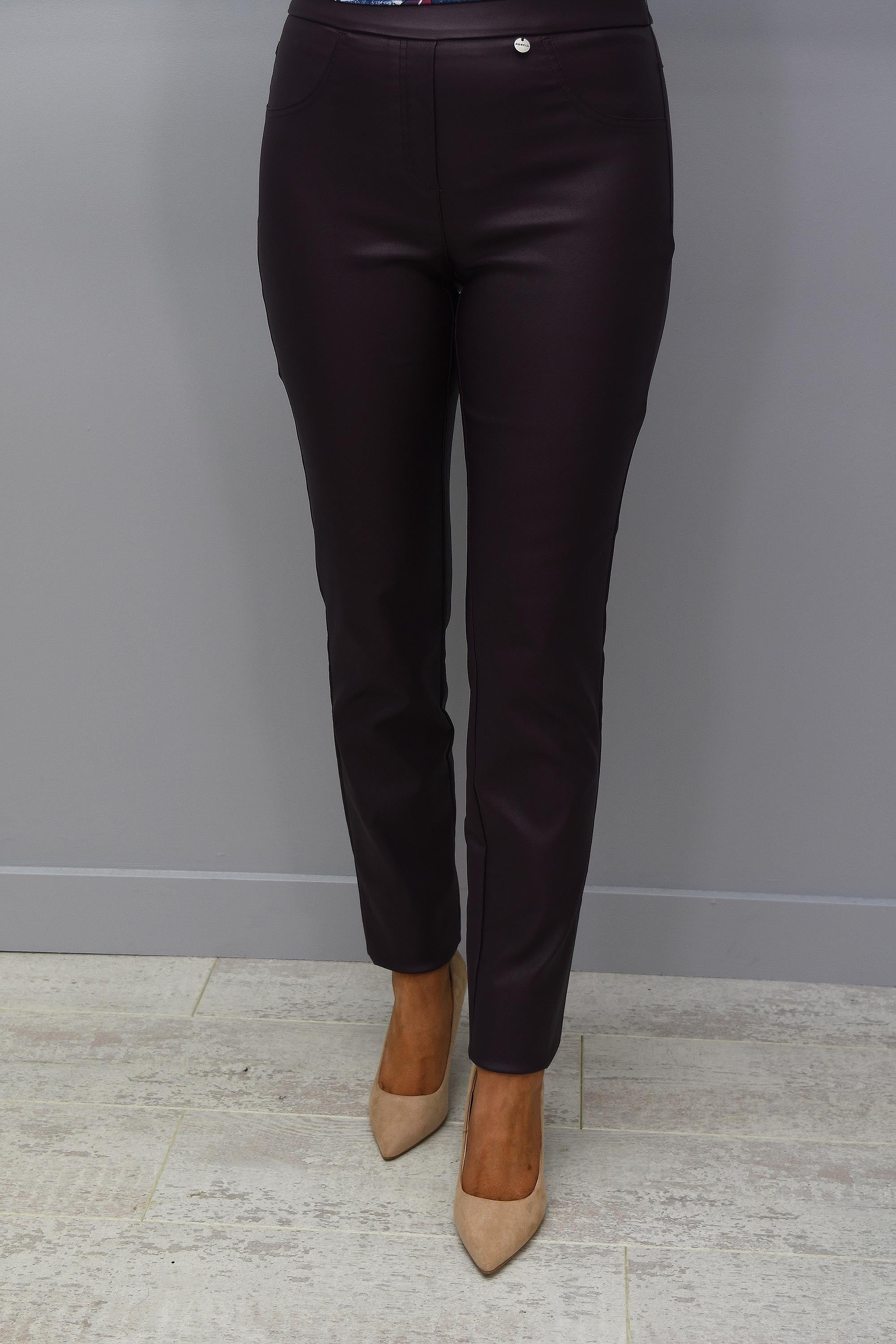 Robell Rose Slim Fit Leatherette Trousers - Burgundy 51462 54344 58