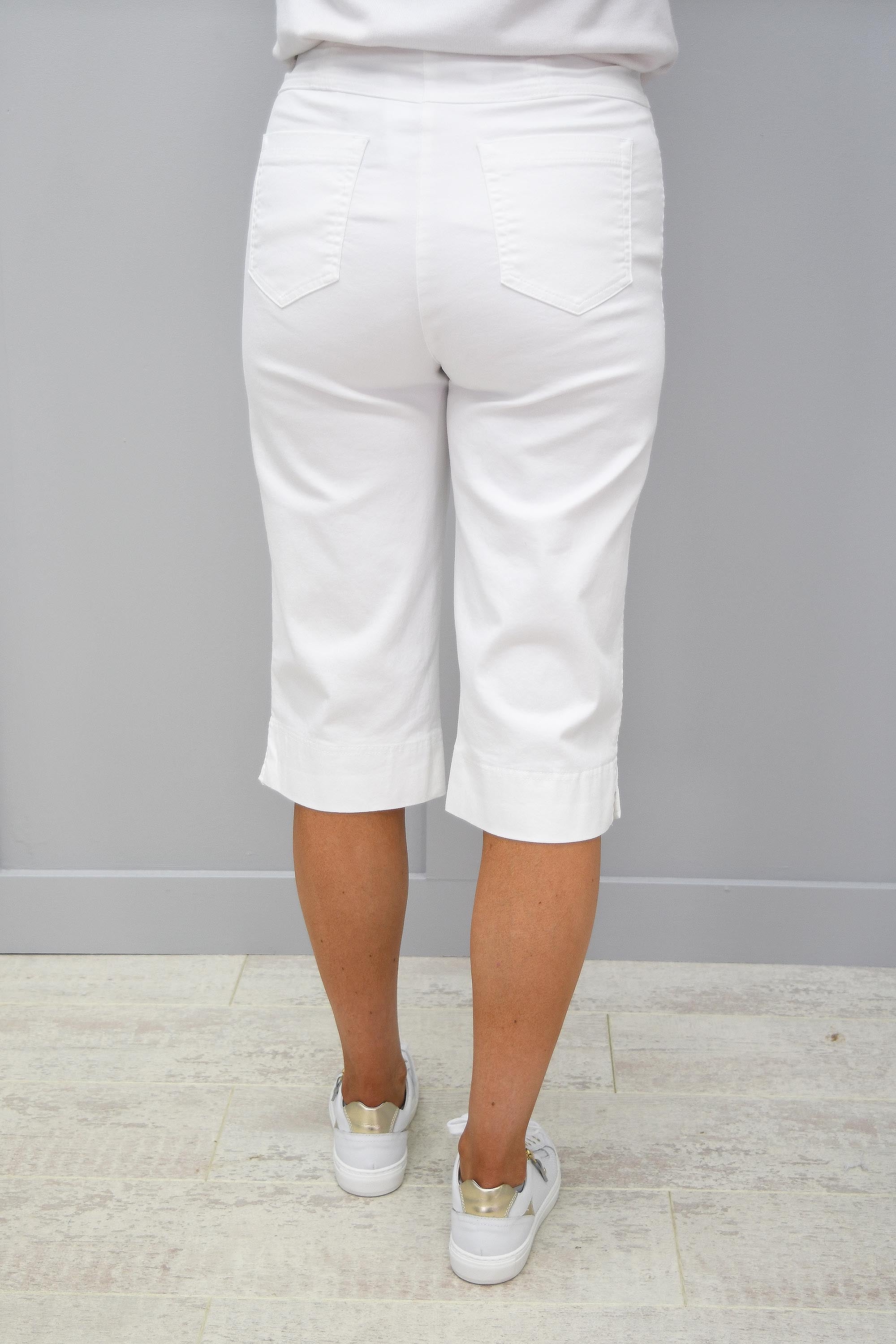 Step out in style this summer in our Robell White Denim Material Shorts. These denim shorts are an essential item for your wardrobe this season. The higher waist is comfortable to wear and allow you to tuck in a little top to show off your figure. The flat elasticated waistband is neat, with no zips or buttons, which make these Robell White Denim Material Shorts your new go-to item. Fully functional pockets at the back show off a relaxed look. The length is perfect...falling just at the knee. Style with a pair of sandals or your favourite wedges and a bright top...and you're summer ready! If you're going on holiday and you want a pair of shorts you can wear day-to-day...then these Robell White Denim Material Shorts tick all the boxes.