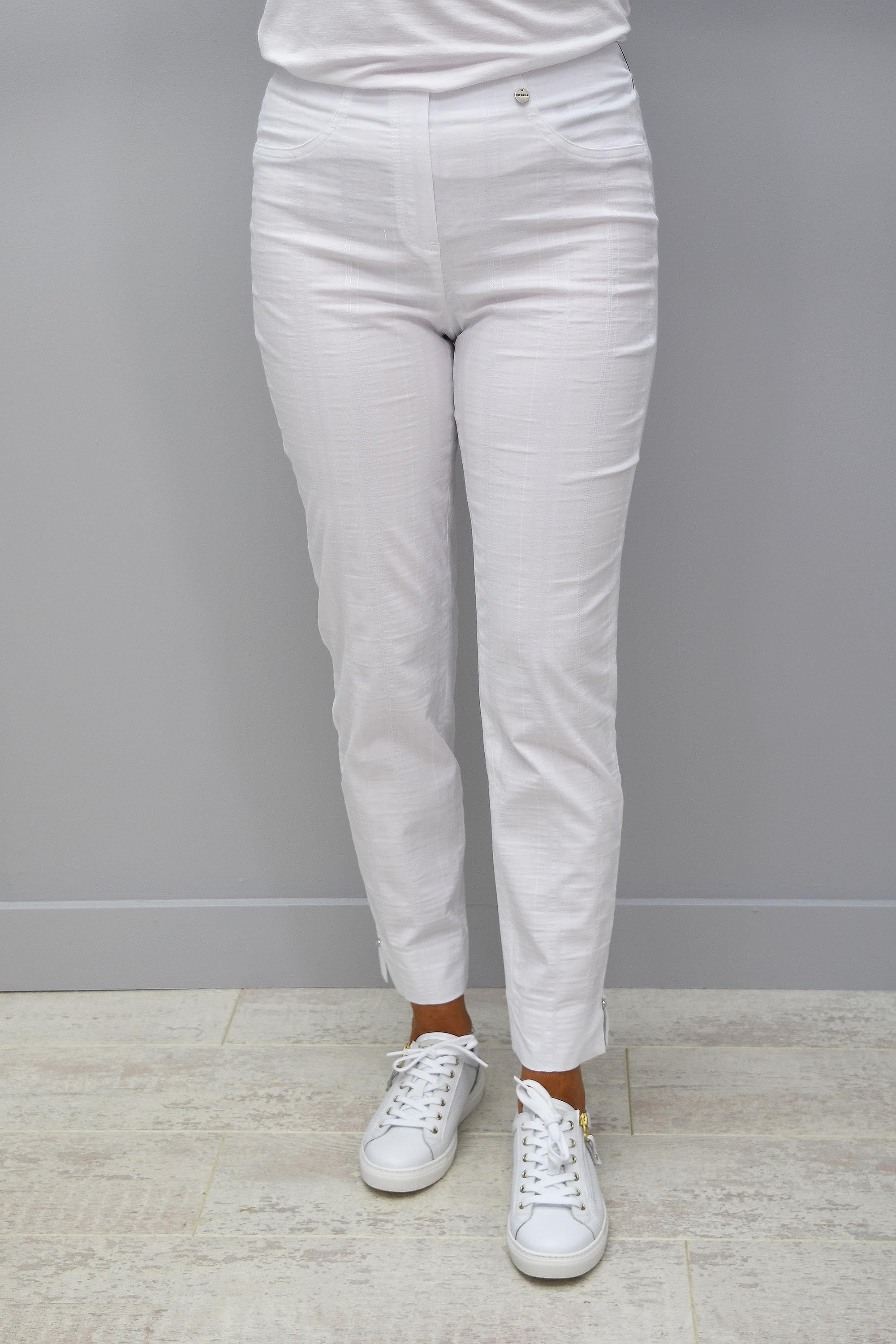 Robell Bella 09 Stripe Seersucker Trousers - White 52642 54554 10