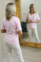 Sunday Baby Pink Top With Diamante Ruffle V Neck Detail-6574 6000 41