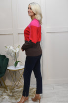 The Sunday Hot Pink, Red & Chocolate Brown Jumper is a bold and colourful knit that brings a vibrant touch to your wardrobe. This eye-catching jumper features a striking combination of hot pink, red, and chocolate brown, creating a playful colour-block design that adds modern flair to your look. Crafted from soft, comfortable fabric, it’s perfect for both casual outings and cozy days at home. The relaxed fit, crew neckline, and long sleeves offer a flattering silhouette, while the rich, contrasting colors make this jumper a standout piece. Style it with jeans or neutral trousers for a fun, statement outfit.