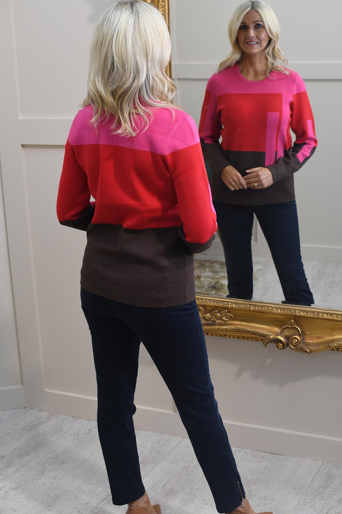 Sunday Hot Pink, Red & Chocolate Brown Jumper -6119 6144 3801
