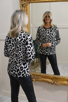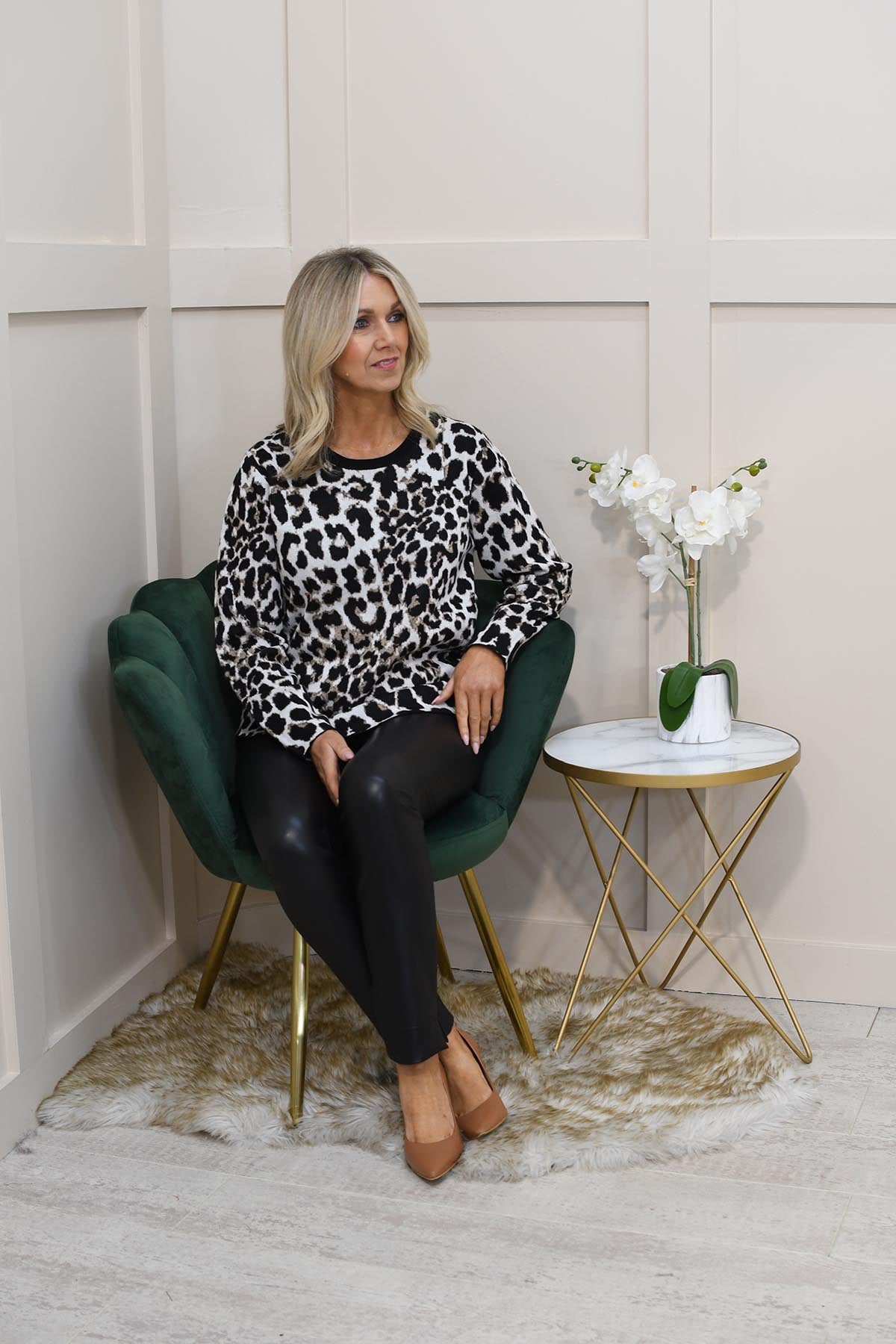Make a statement with the Sunday Leopard Print Jumper in classic black, featuring a bold animal print design. Crafted from 55% acrylic and 45% cotton, it offers breathable softness with lightweight warmth, ensuring comfort for all-day wear. The timeless leopard pattern adds a touch of contemporary edge, while the black base keeps it versatile and easy to style. Perfect for pairing with jeans, trousers, or skirts, this jumper transitions seamlessly from casual weekends to smart-casual outings. A chic wardrobe staple, it’s ideal for women who love knitwear that combines comfort with standout, fashion-forward style.