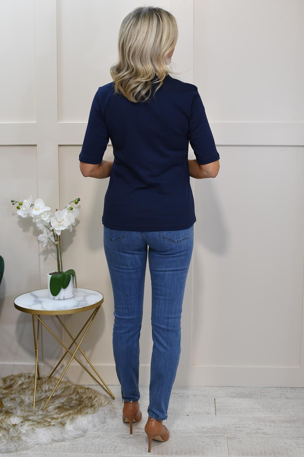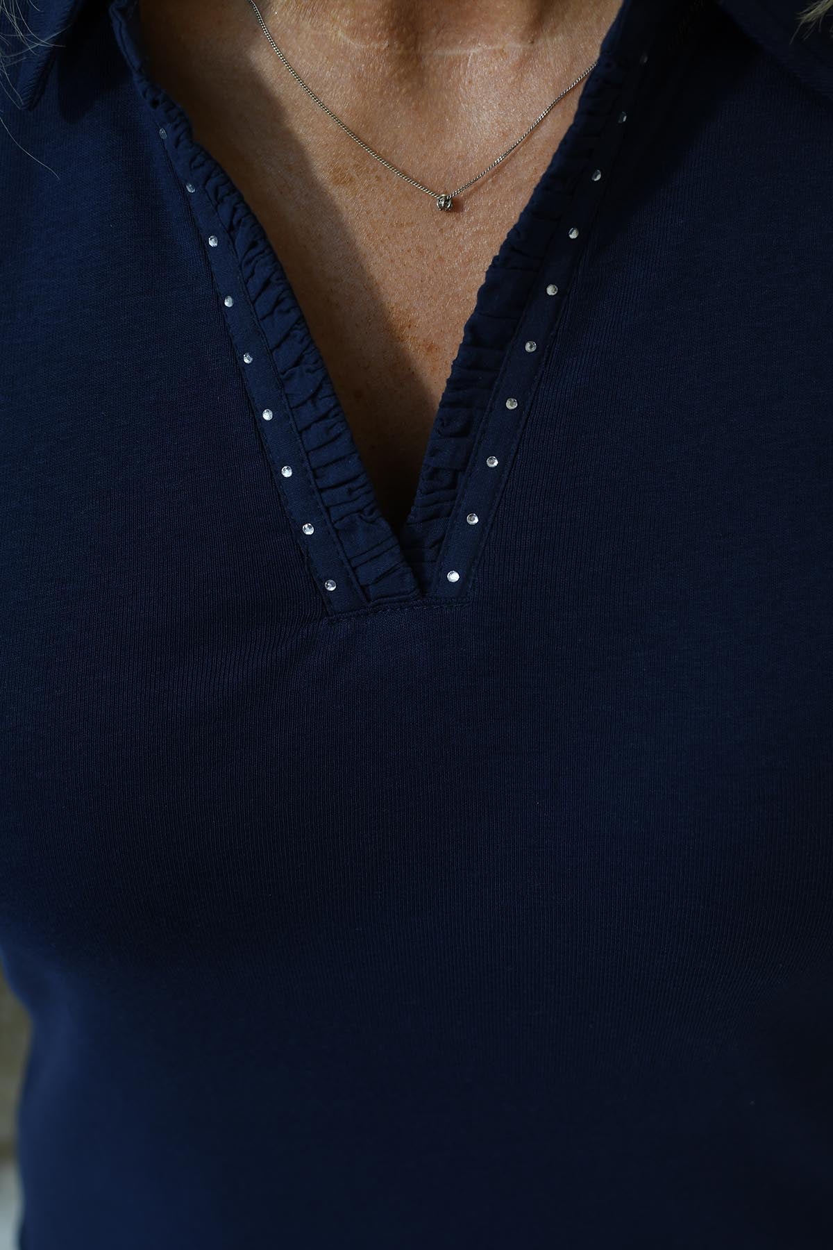 Sunday Navy Open Collar Polo Top With Diamante Ruffle Detail-6434 6000 69