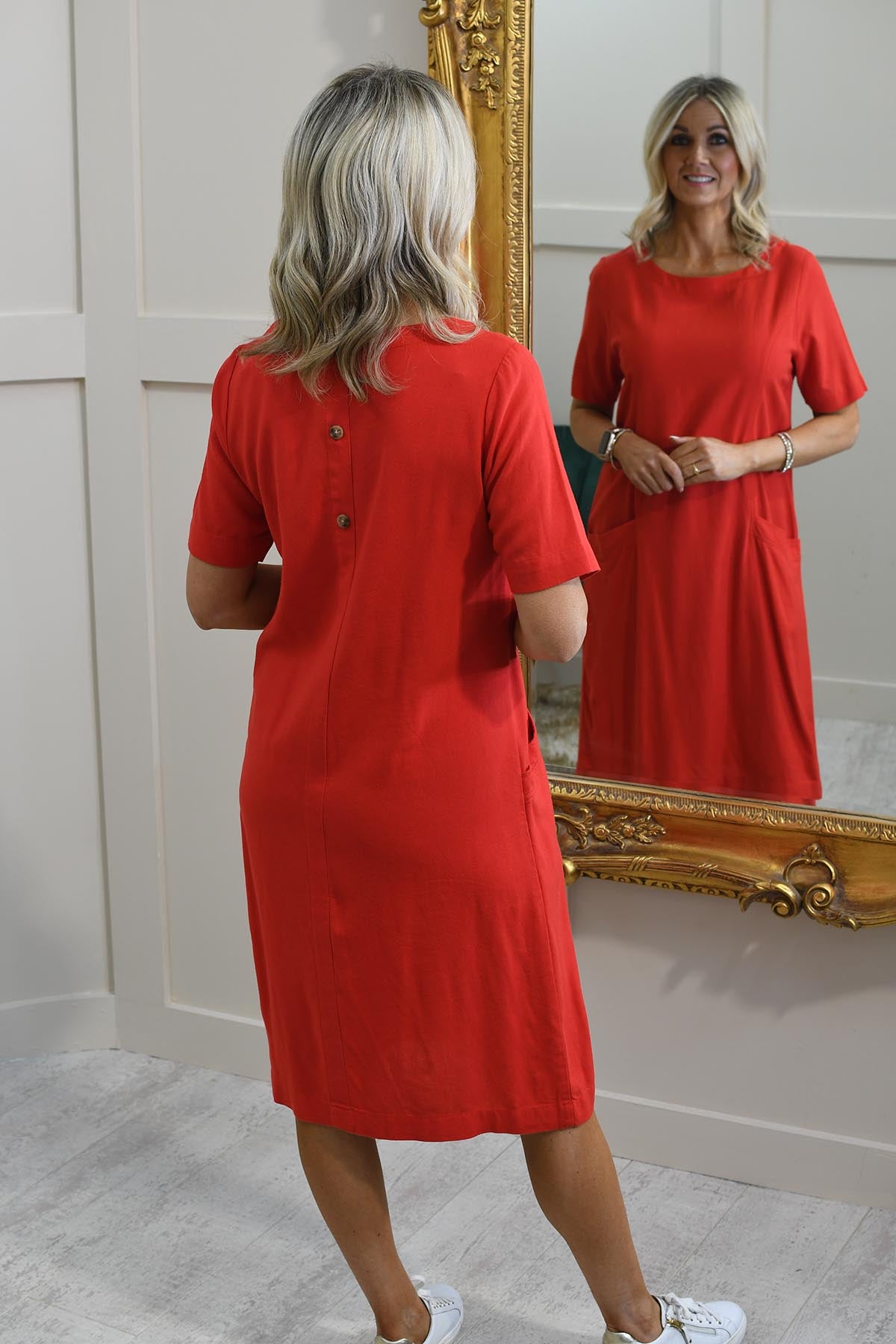 Sunday Red Smock Dress With Pockets & Button Detail-6083 6056 401