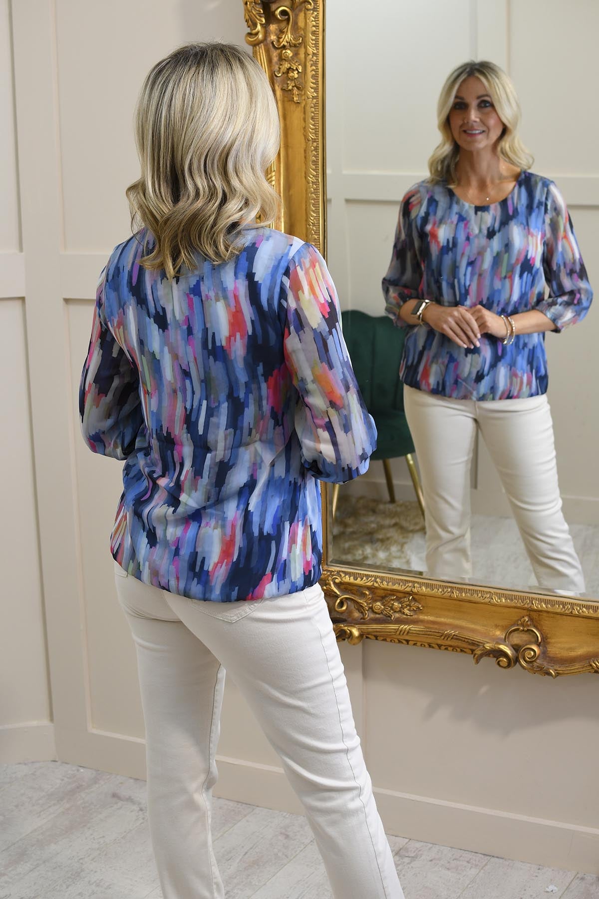 Sunday Watercolour Blouse With Sheer Sleeves- 6334 6219 77