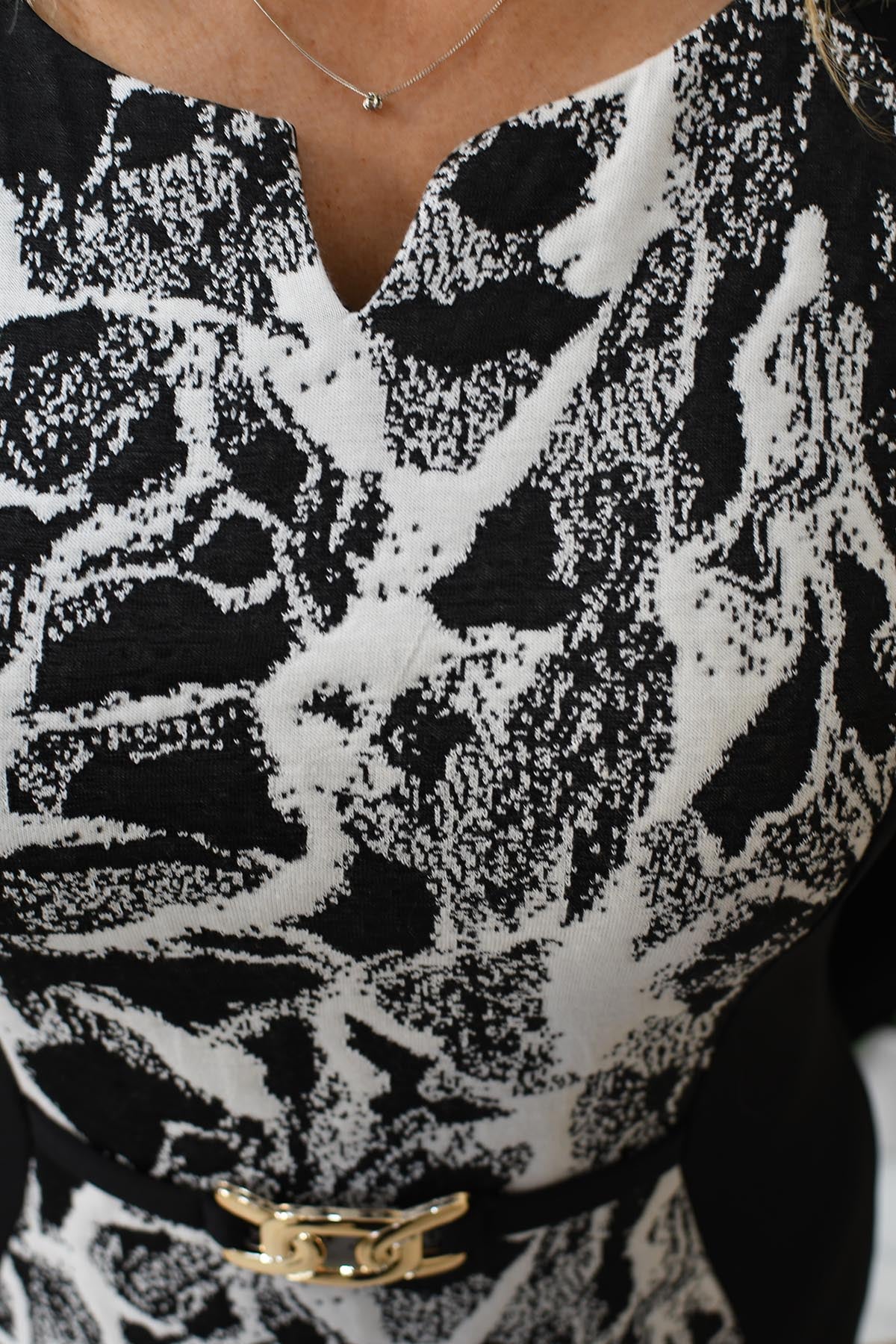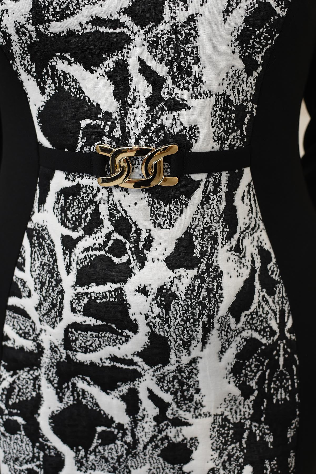 Tia Abstract Dress With Gold Buckle Detail Black 78843 7985 90