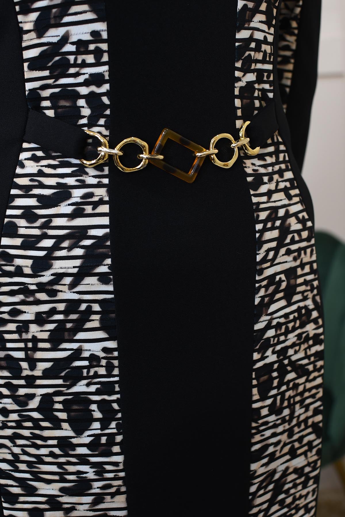 Tia Black Dress With Leopard Print Panelling & Belt Detail-78841 7862 90