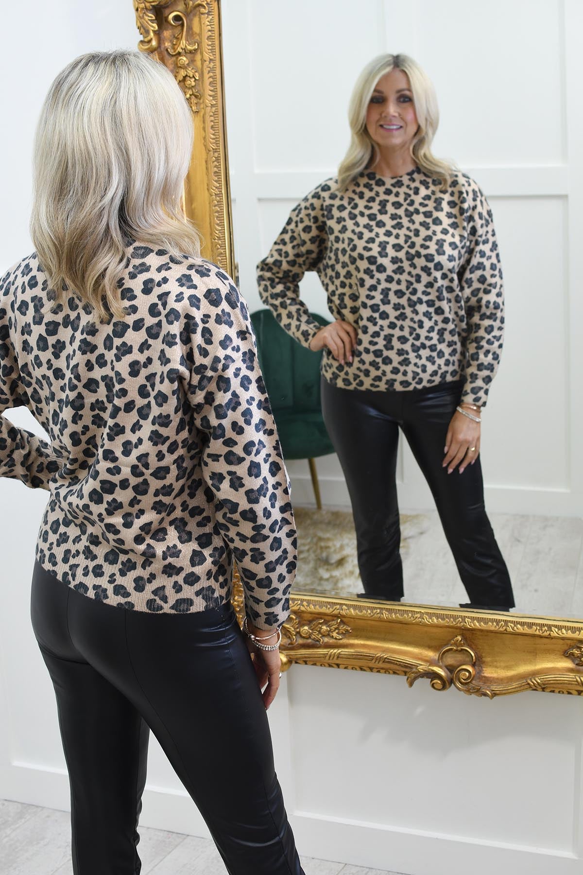 Version Feminin Bronze Shimmer Leopard Print Jumper- A2051
