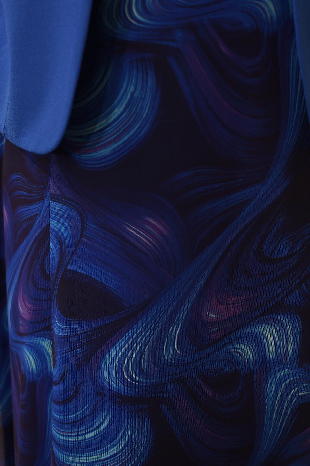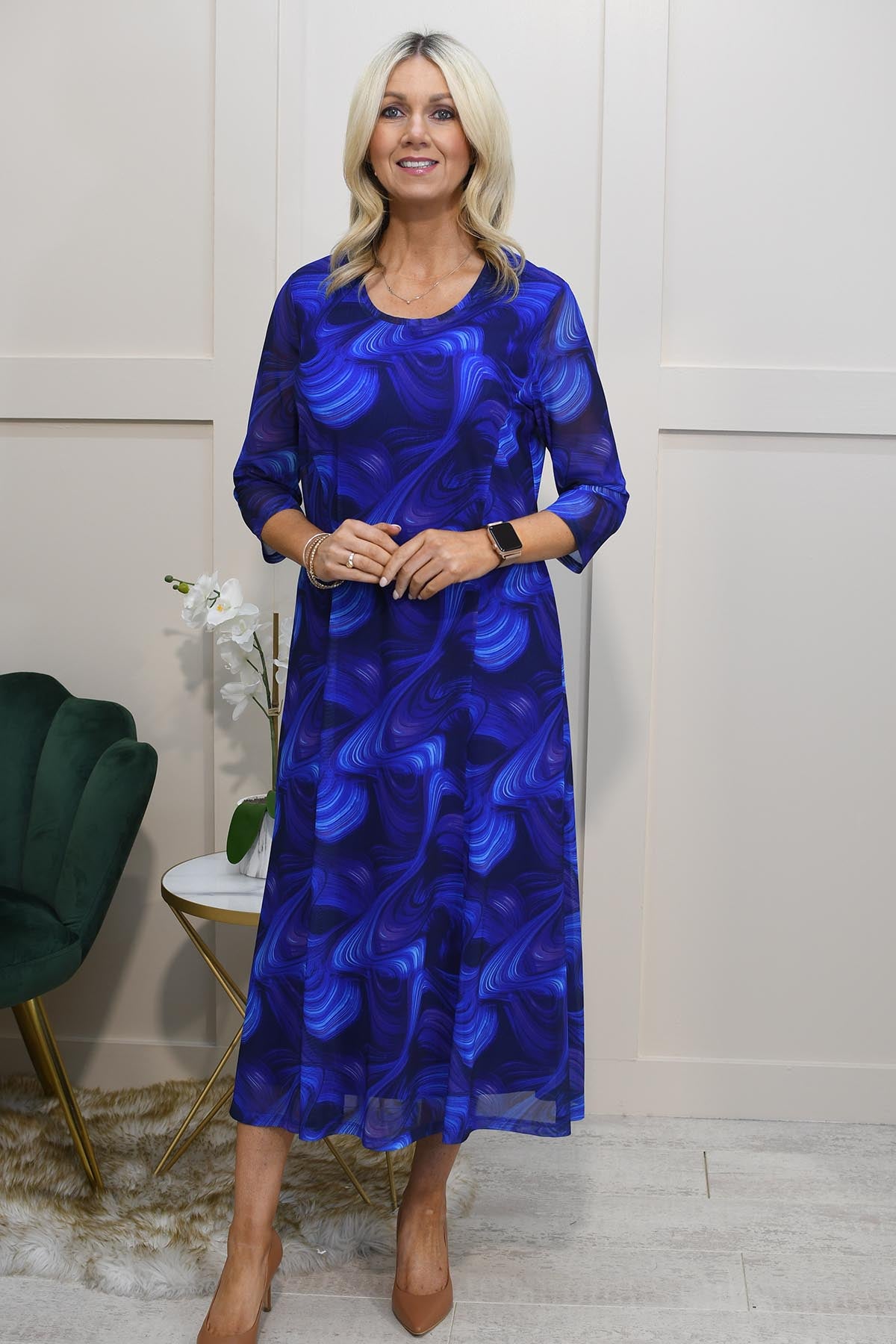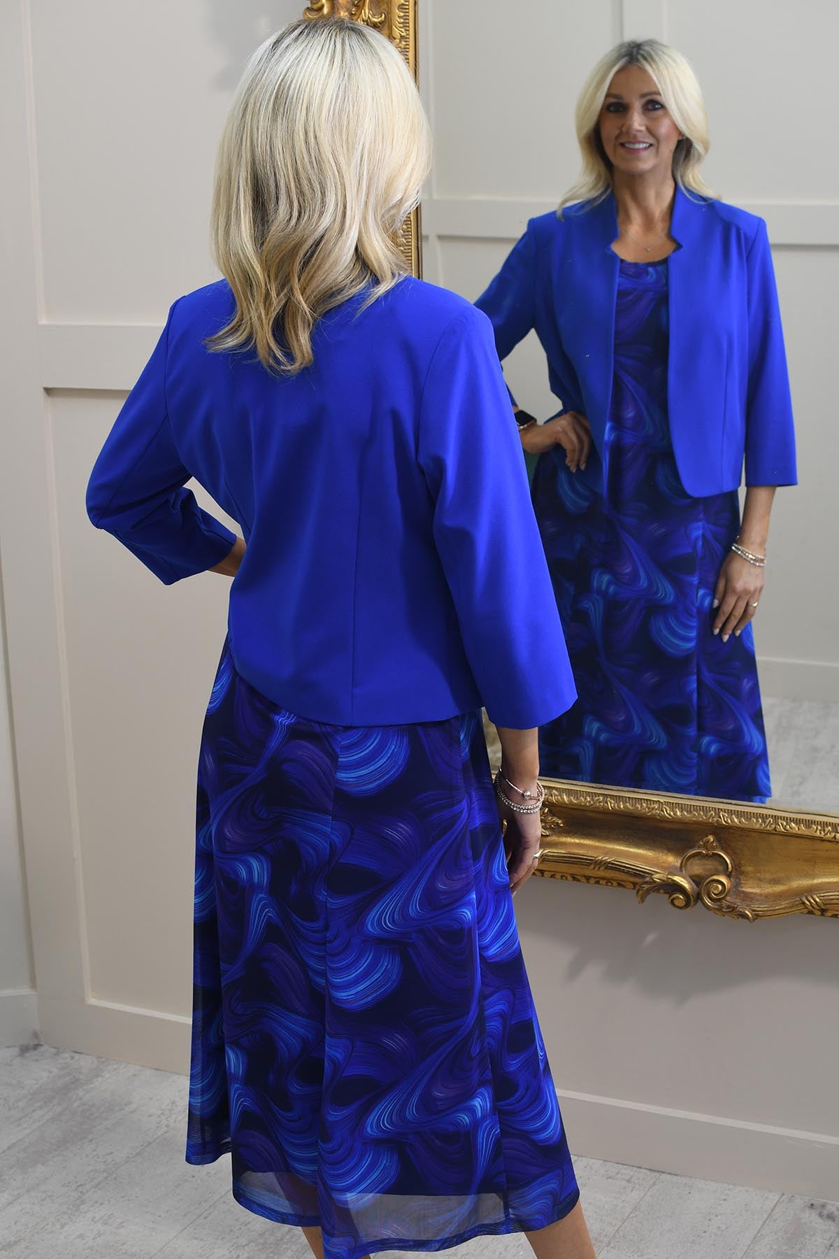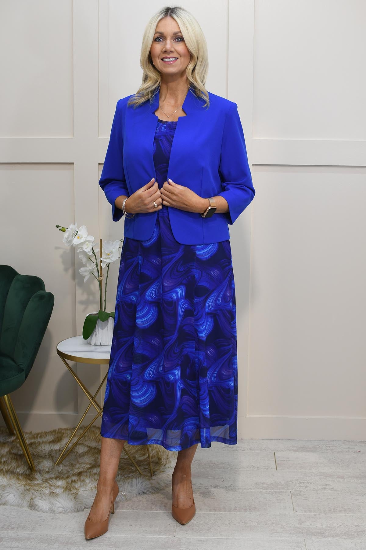 Via Veneto Cobalt Swirl Pattern Dress With Bolero- V227