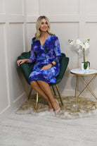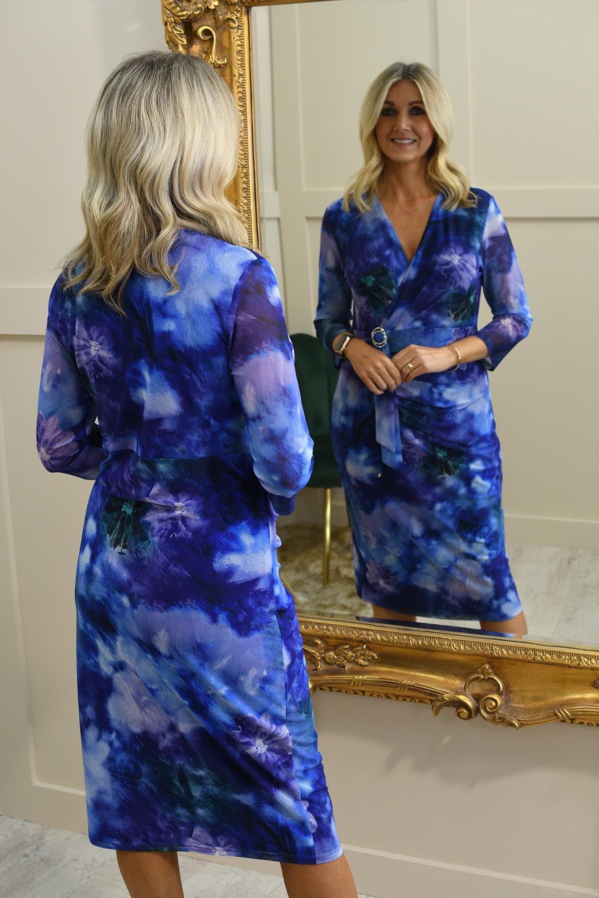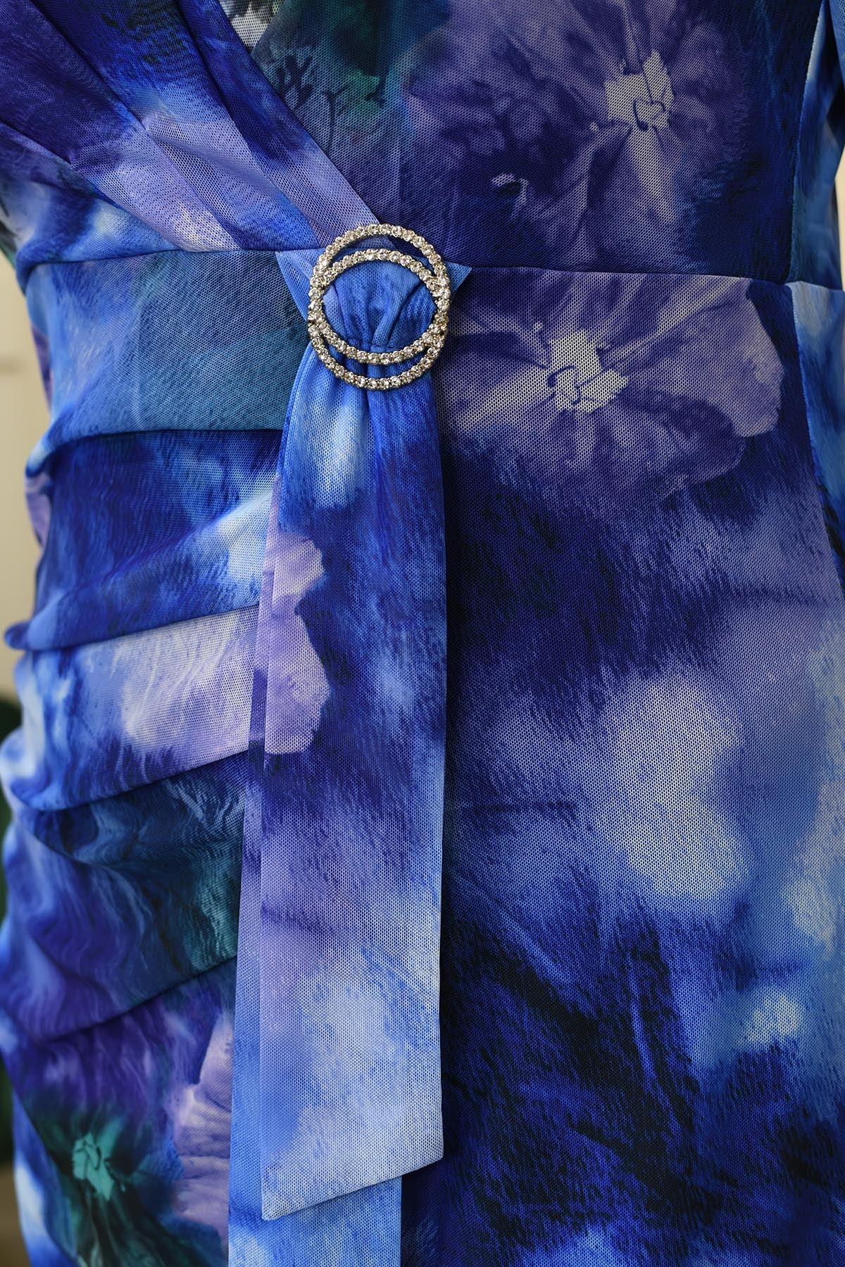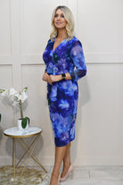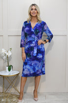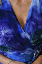 Via Veneto- Floral Print Dress With Buckle Detail- Royal Blue & Purple-A7125/V728