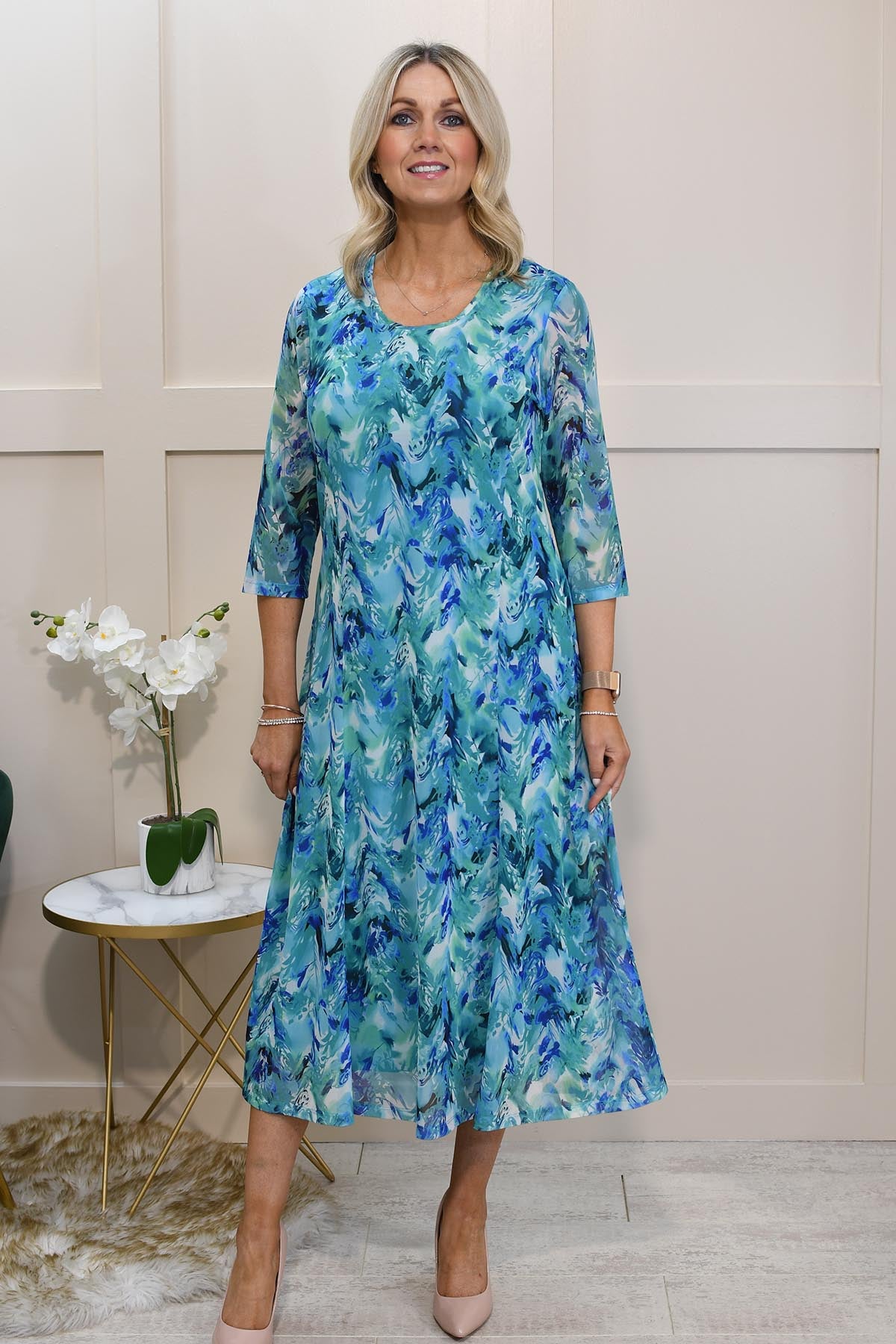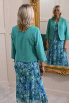 Via Veneto Jade Green Floral Print Dress With Bolero-V327