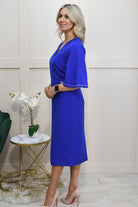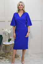 Via Veneto Royal Blue V Neck Dress With Diamante Detail- V338 Juno