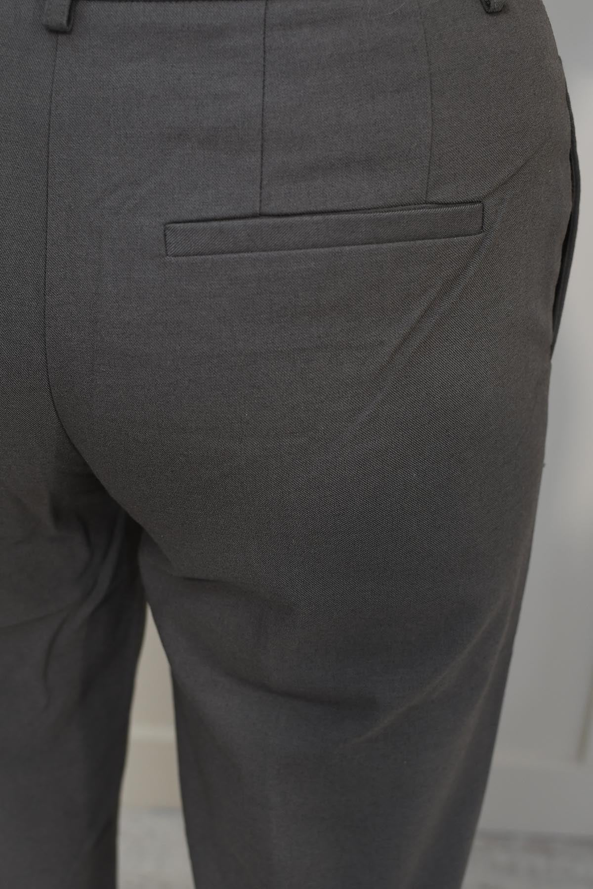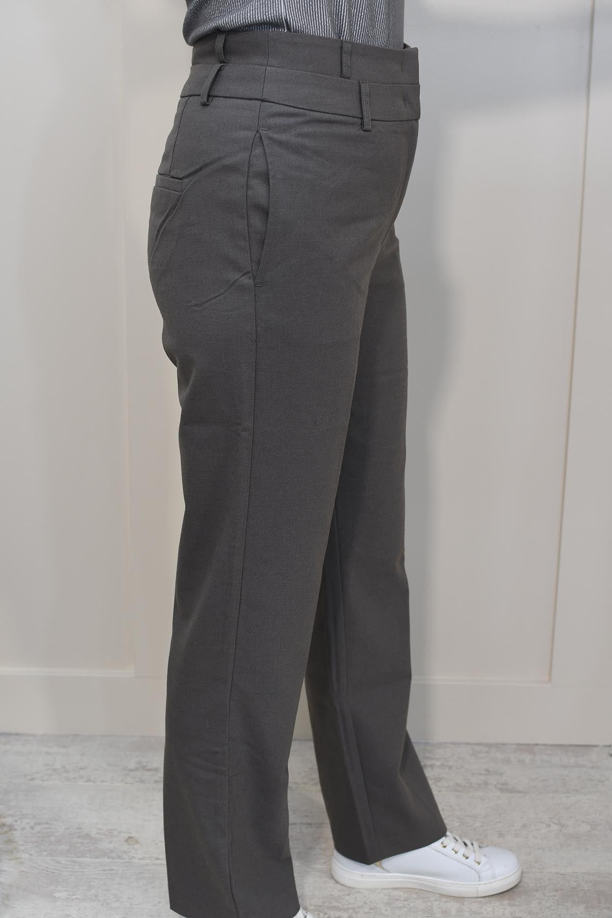 YAYA High Waist Trousers With Double Waistband- Dark Taupe Grey 01-301225-510