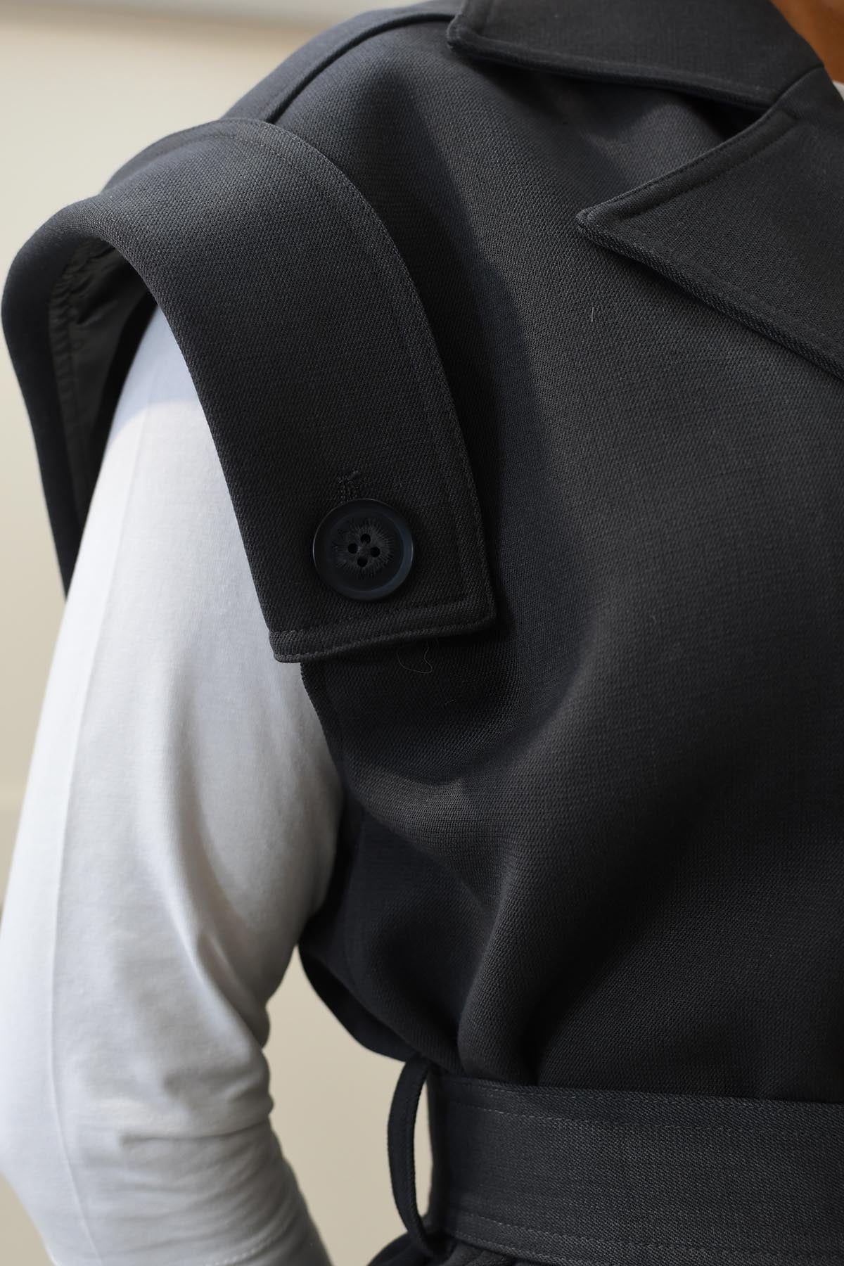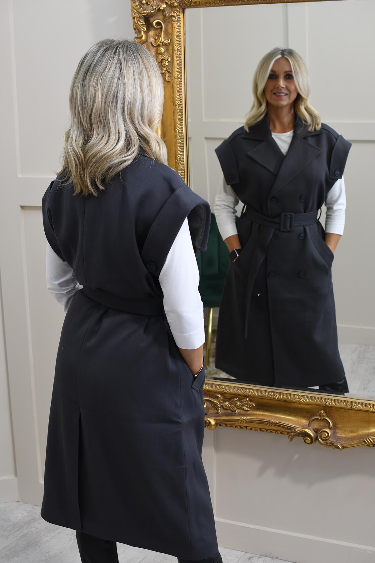 YAYA Long Sleeveless Coat With Lapels & Belt -Anthracite Melange 01-511041-509